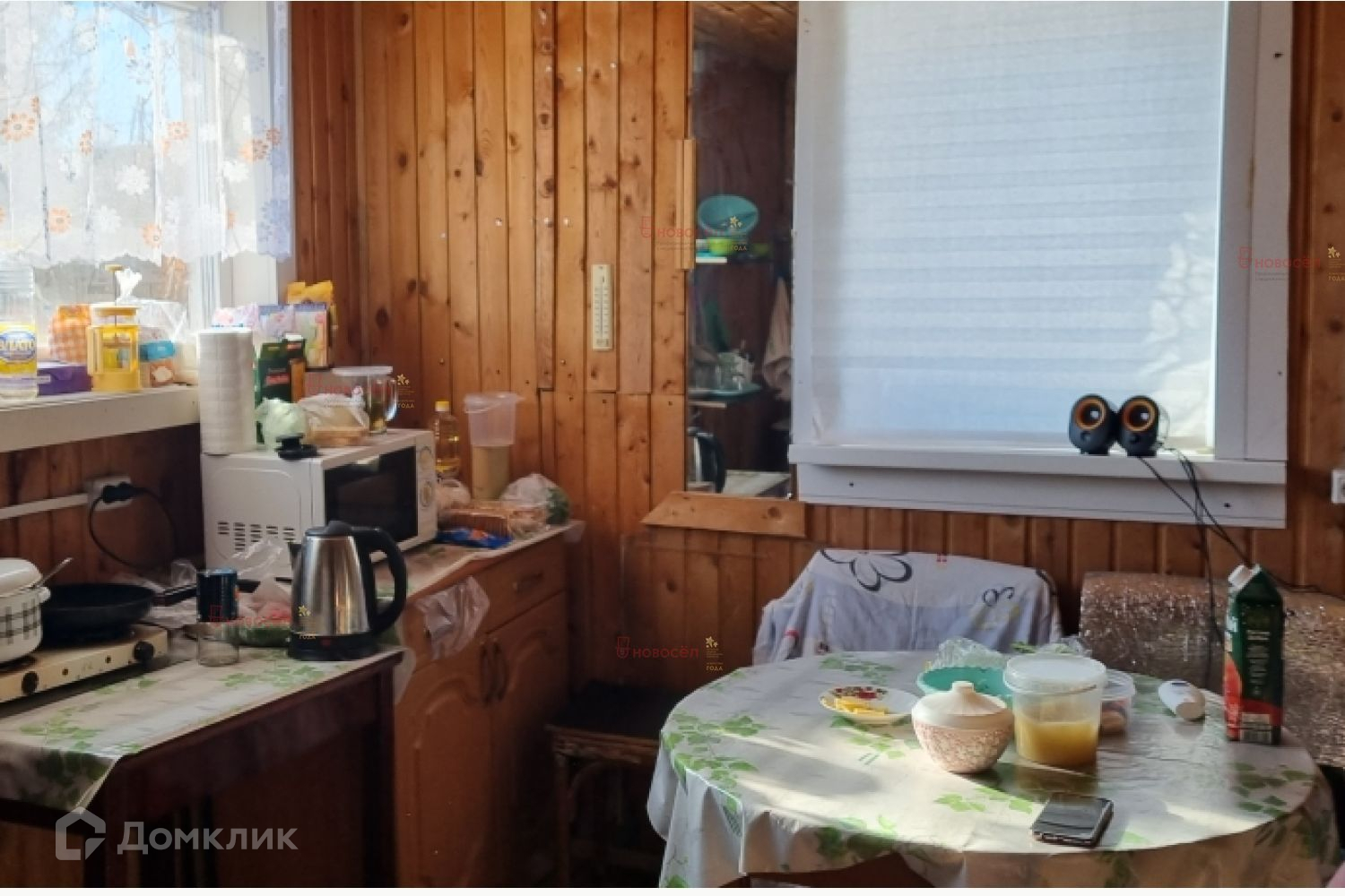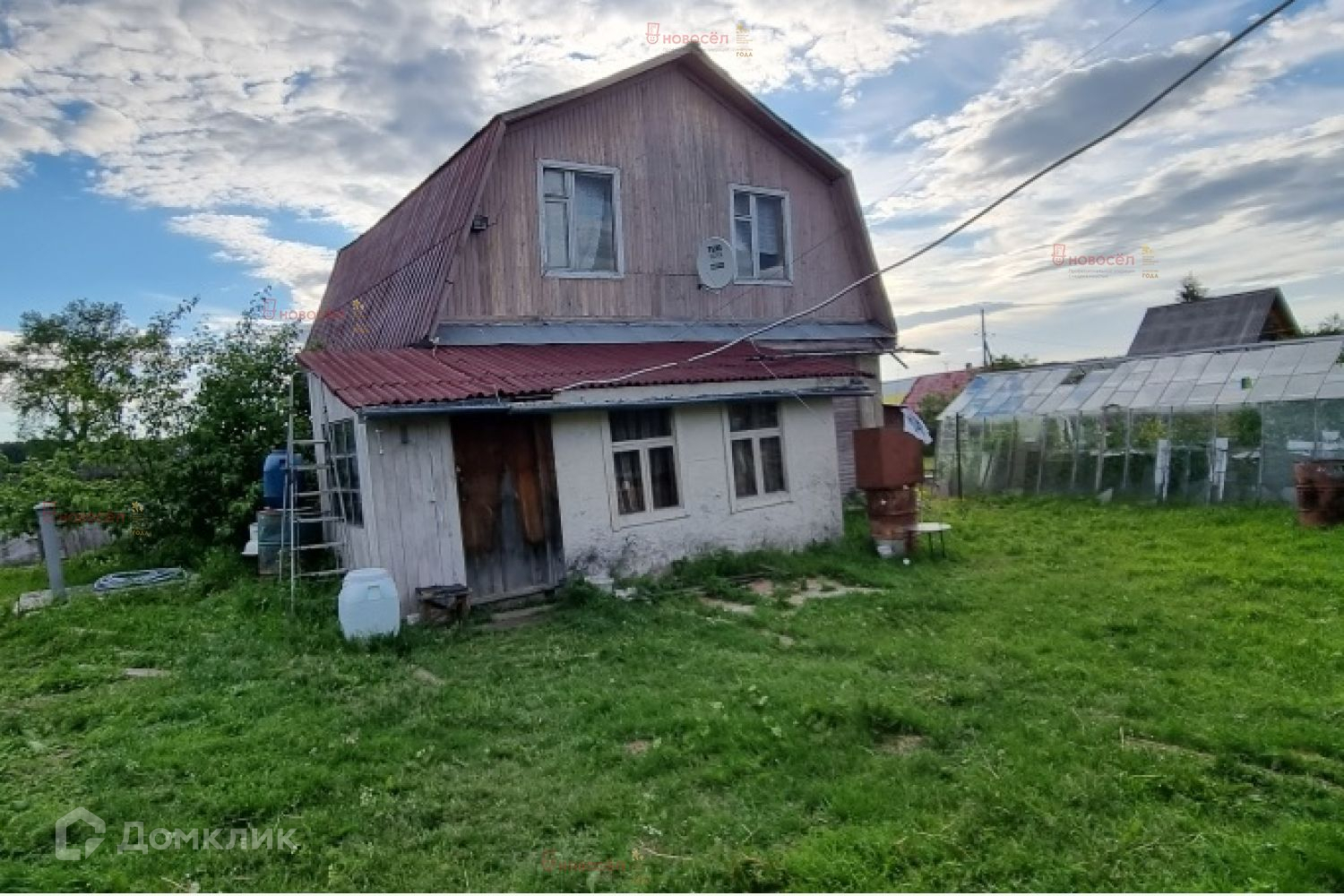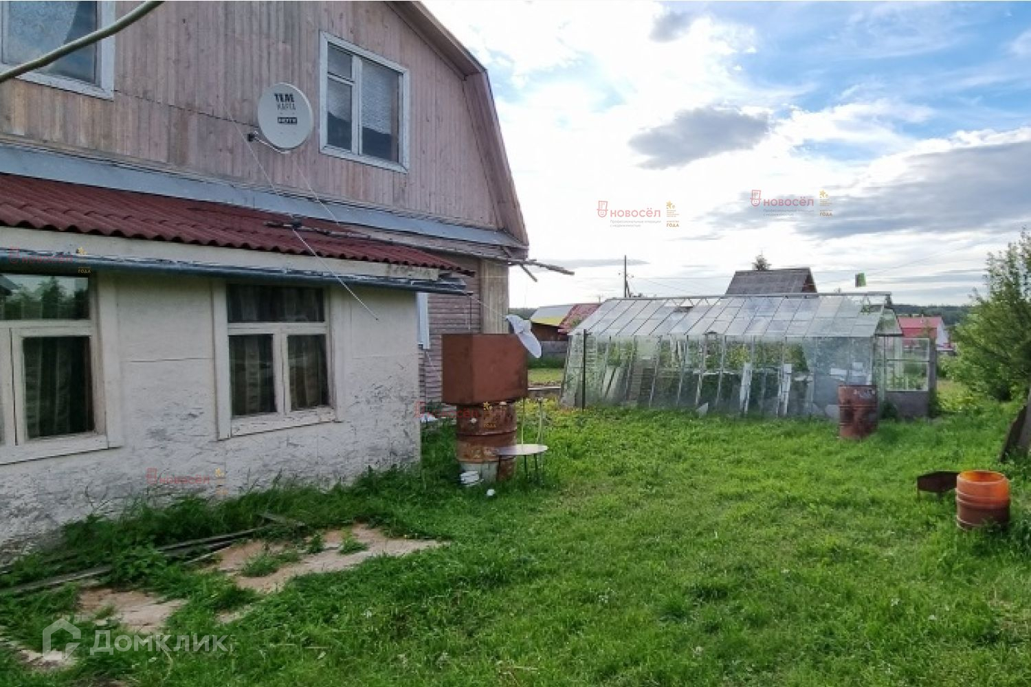 Дом 2 этажа. Первый этаж- 30 м2. Второй этаж 20 м2 –мансардный. Стены обшиты вагонкой. Скважины нет. Отопление печное, туалет в доме и ватерклозет. Электричество. Спутниковое телевидение.