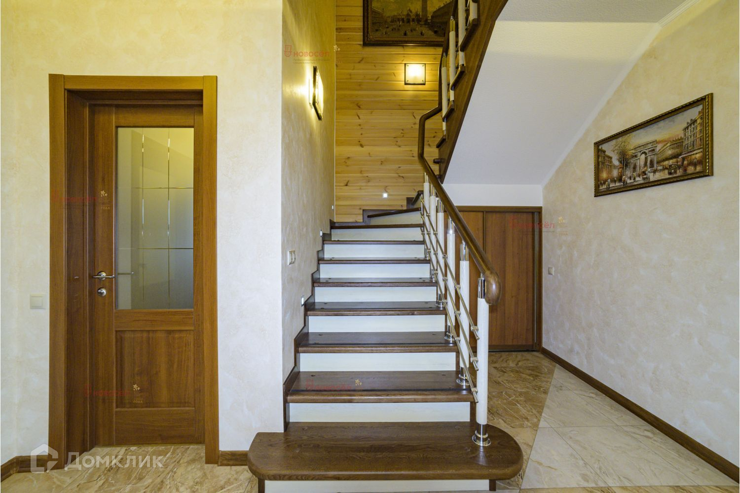 Лестница ведущая на второй этаж выполнена из натурального дерева и очень комфортна для подъема и спуска. Котельная отделена от жилой зоны двумя дверьми из массива - полностью звуконепроницаема! Там установлено все техническое оборудование: Газовый котел, дополнительный электрический котел, а так же источник бесперебойного питания! В доме все продумано до мелочей: установлены кондиционеры на первом и втором этаже, первый этаж полностью оборудован теплым полом, везде установлены и продуманы проходные выключатели, установлена охранная система.
