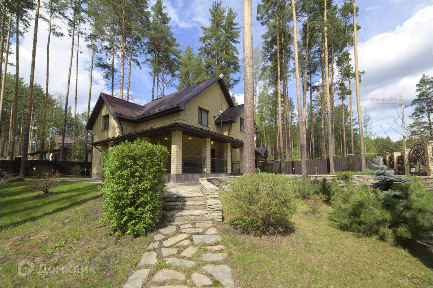 Участок 15 соток полностью огорожен, установлено видеонаблюдение, а так же выполнен ландшафтный дизайн: сделан дренаж, участок всегда сухой, тропинки и площадка перед домом выложены из натурального камня, высажены красивые деревья, кустовые растения (гортензии, кусты шиповника и розовые кусты). На участке сохранены многолетние сосны высотой около 35 метров, на всей территории красивый английский газон, по участку разведено освещение и подсветка - все очень красиво, ухожено!