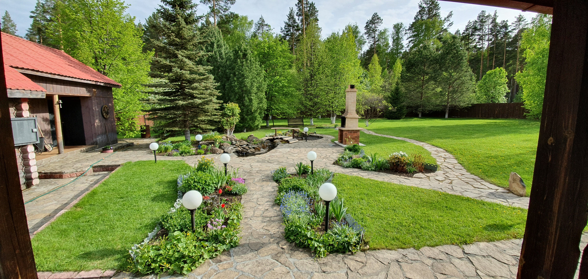 Ландшафтный дизайн выполнен от известной ландшафтной мастерской Сергеевых.