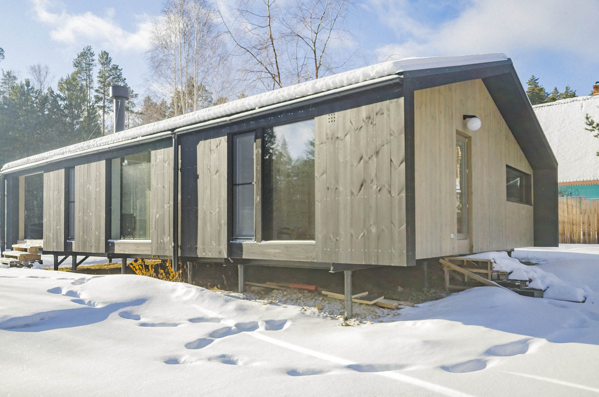 Фундамент металлокаркас на металлических сваях, в доме тепло: электроконвекторы, утеплены пол и крыша ( утеплитель Paroc), энергосберегающие двухкамерные стеклопакеты с аргоном.