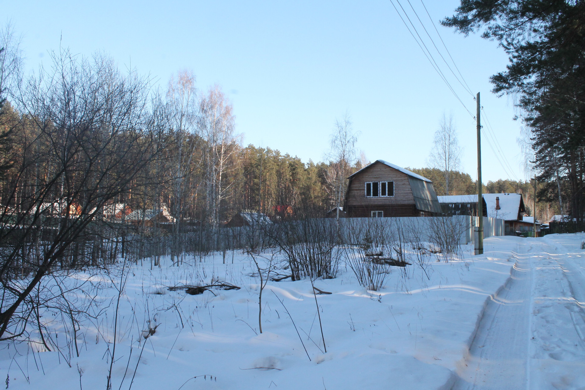 Напротив участка, через дорогу, лес. Можно разместить некапитальные строения и авто.