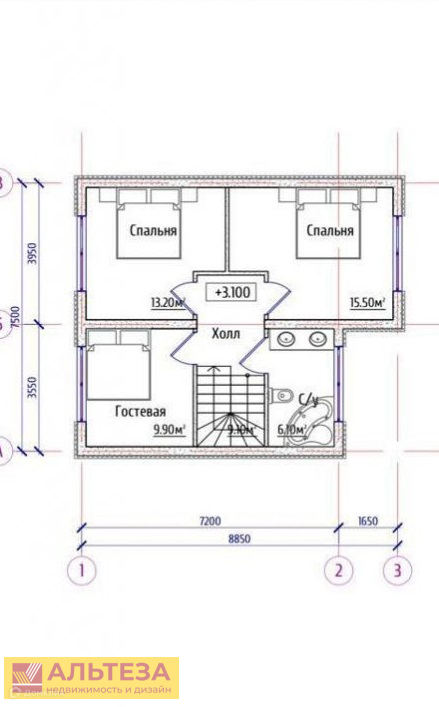 2 этаж : 3 спальни и ванная комната
