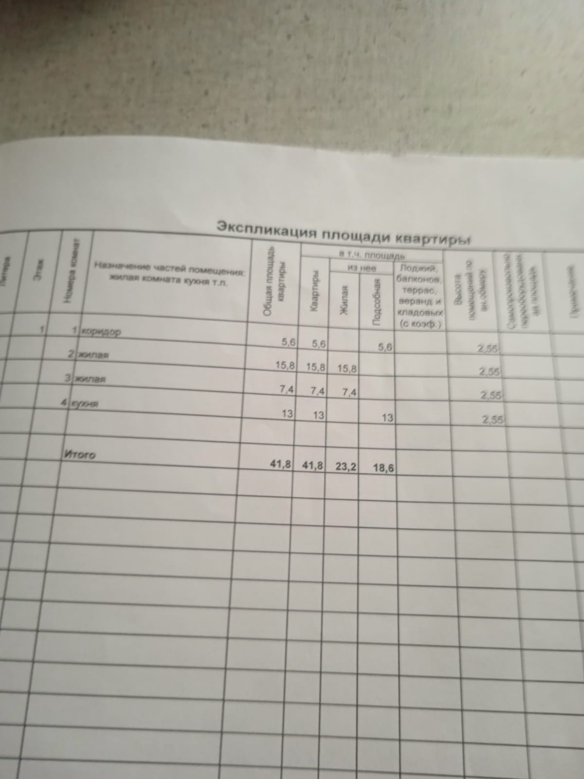 Общая площадь 41.8 м2