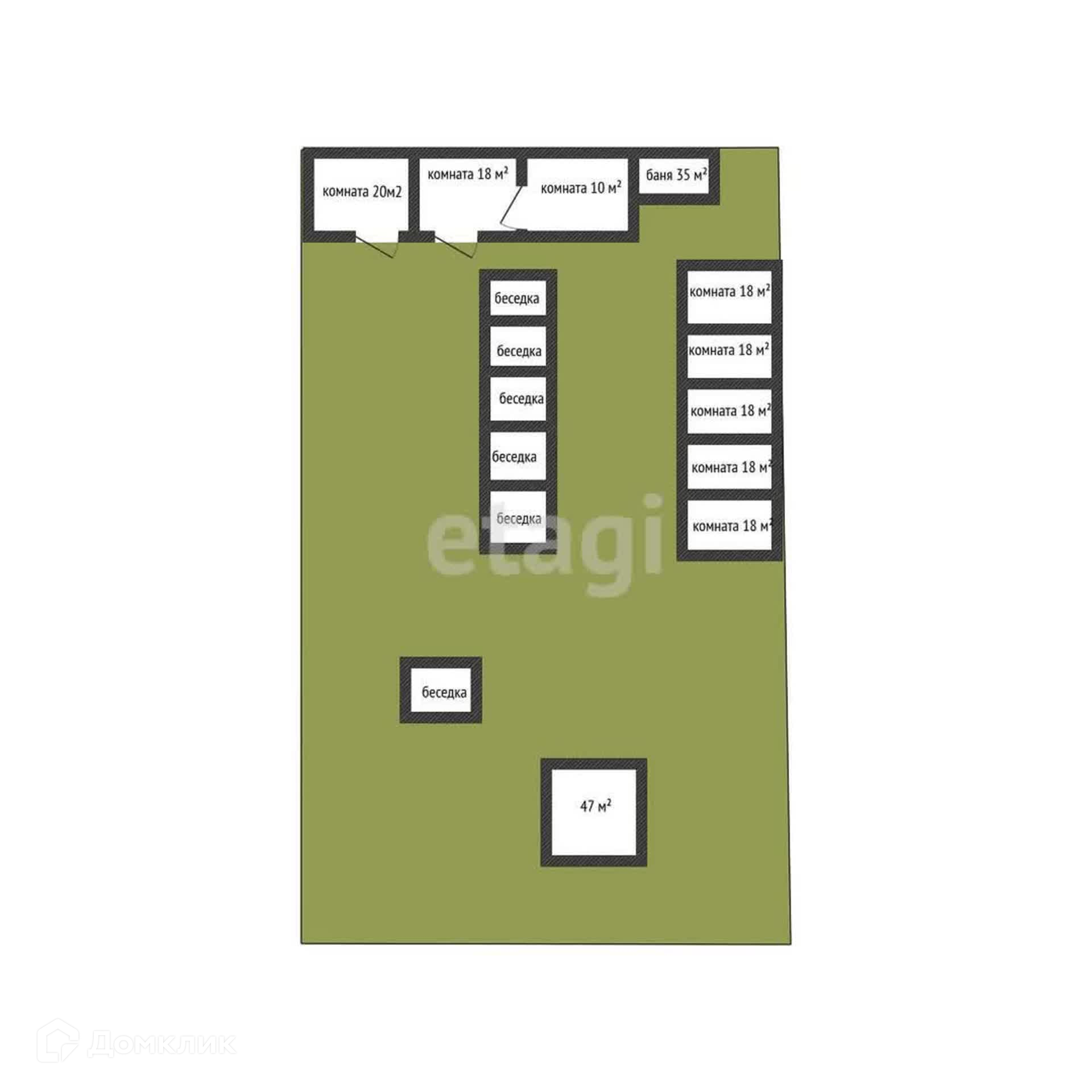 • Пять домиков по 18 м2, аналогично капитально построенных, хорошая шумоизоляция, напротив каждого домика предусмотрены беседки с мангальной зоной и гамаками. Каждый домик с хорошими ремонтом, с кухней, оснащенные посудой и совмещенным санузлом.
