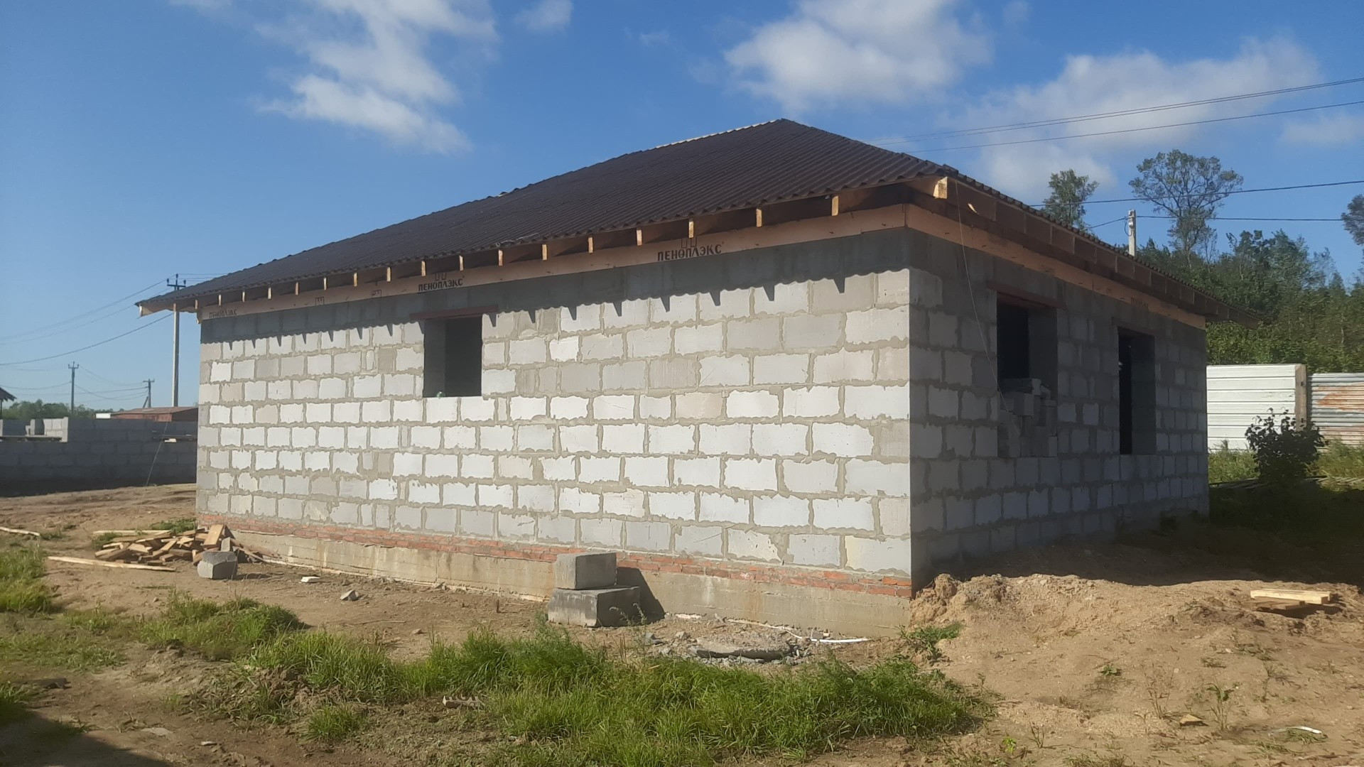 Крыша: дом 95 кв.м 4-х скатная ондулин, дом 60, 76 кв.м 2-х скатные