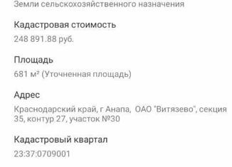 Объект №37739. Продам земельный участок № 360 площадью 681 кв. метров (фасад 17 метров), назначение - САДОВОДСТВО. Участок находится на хуторе Капустин в непосредственной близости от "Витязевского" лимана (с федеральной трассы А-290 - 100 метров по хорошей дороге отсыпанной щебнем с Юровского карьера ). Вдоль участка проходит городской свет - Кубан... |