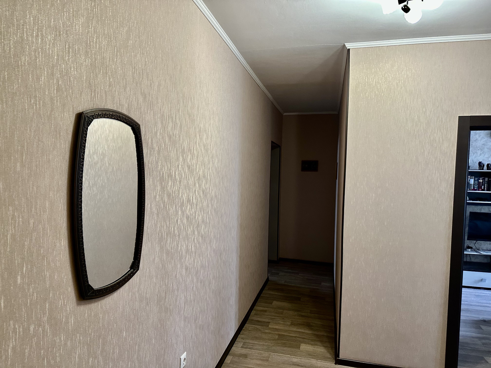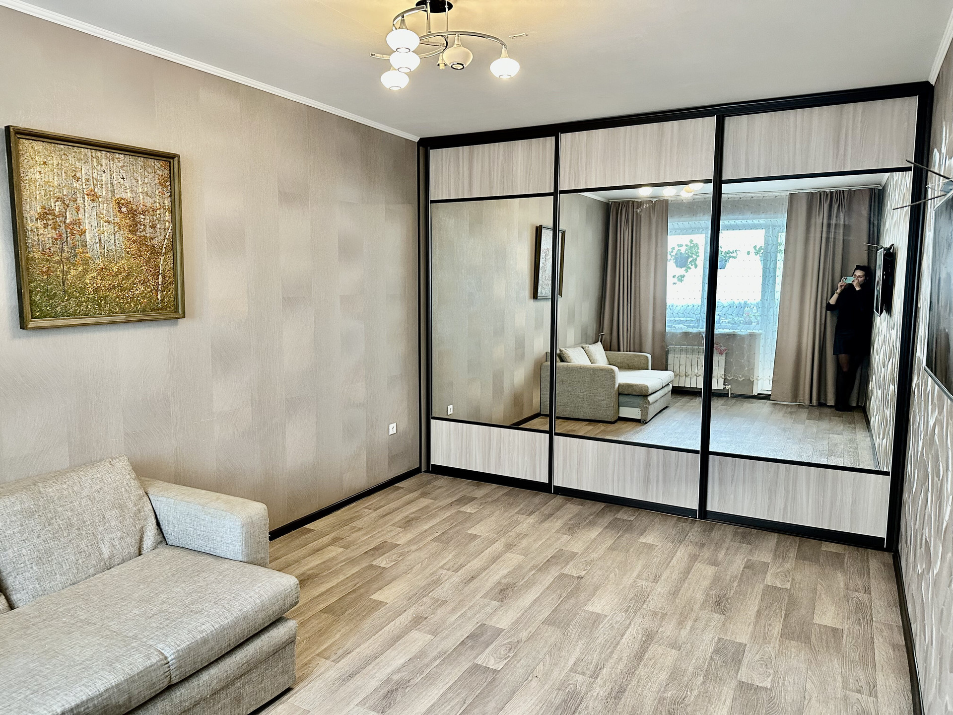 Современные обои. Остается кухня и большой шкаф купе в спальне.