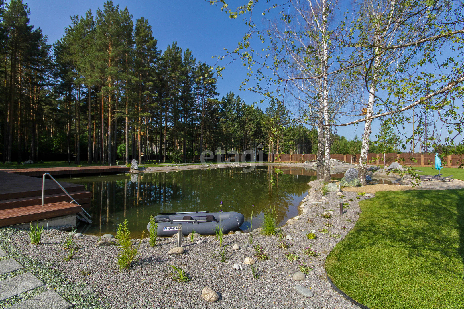 На участке есть водоем, природного происхождения, очищен, проведено благоустройство, имеет пляжную линию и граничит непосредственно с домом, размеры 20*40 метров и глубина 2 метра!