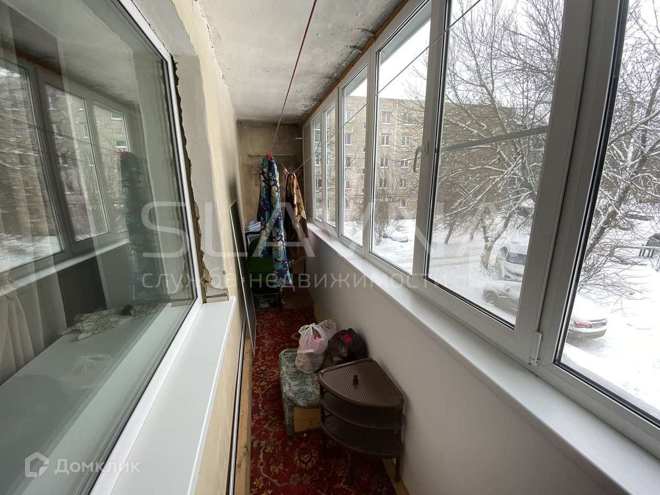 Большая, застекленная лоджия 6 метров.