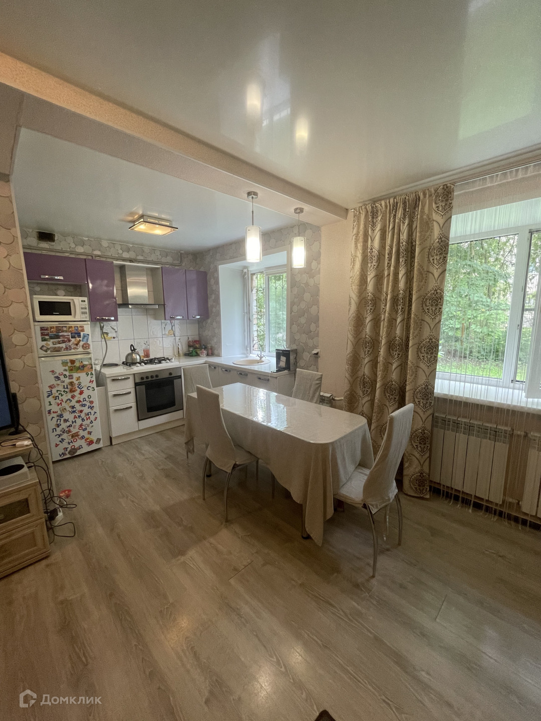 В квартире сделан ремонт, окна-ПВХ, потолок натяжной, полы переделывались, батареи заменены, проводка новая. Сан. узел совмещен в кафеле. Новым собственникам в подарок остается Кухонный гарнитур, ванная мебель.