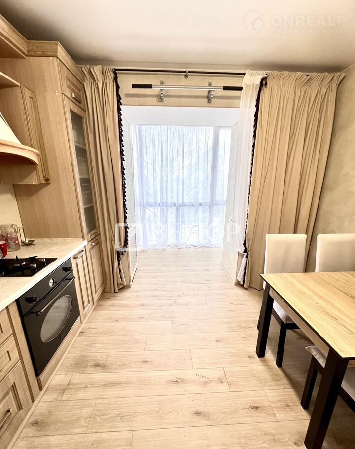 Лоджия присоединена к кухне, установлен витраж, что добавляет света и визуально расширяет пространство .Перепланировка узаконена .