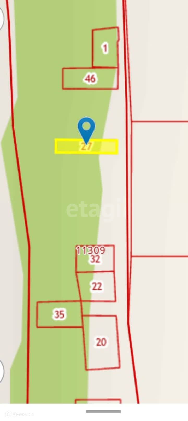 Участок в собственности, свет, вода рядом с участком. Дорога круглогодично обслуживается, район активно застраивается. Соседи проживают.