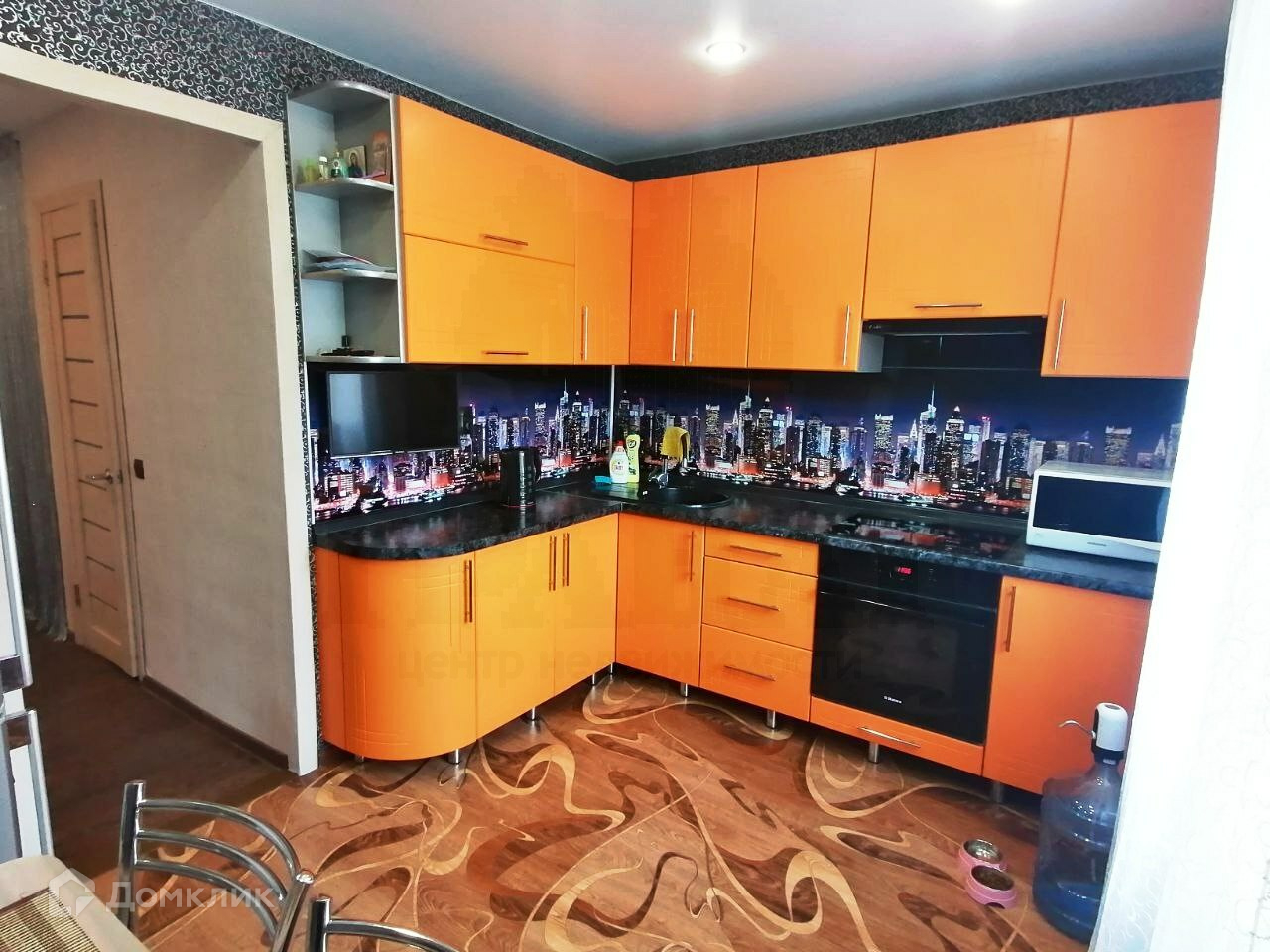Окна кухни и комнаты выходят на детскую площадку - удобно наблюдать за детьми, когда они гуляют на улице.