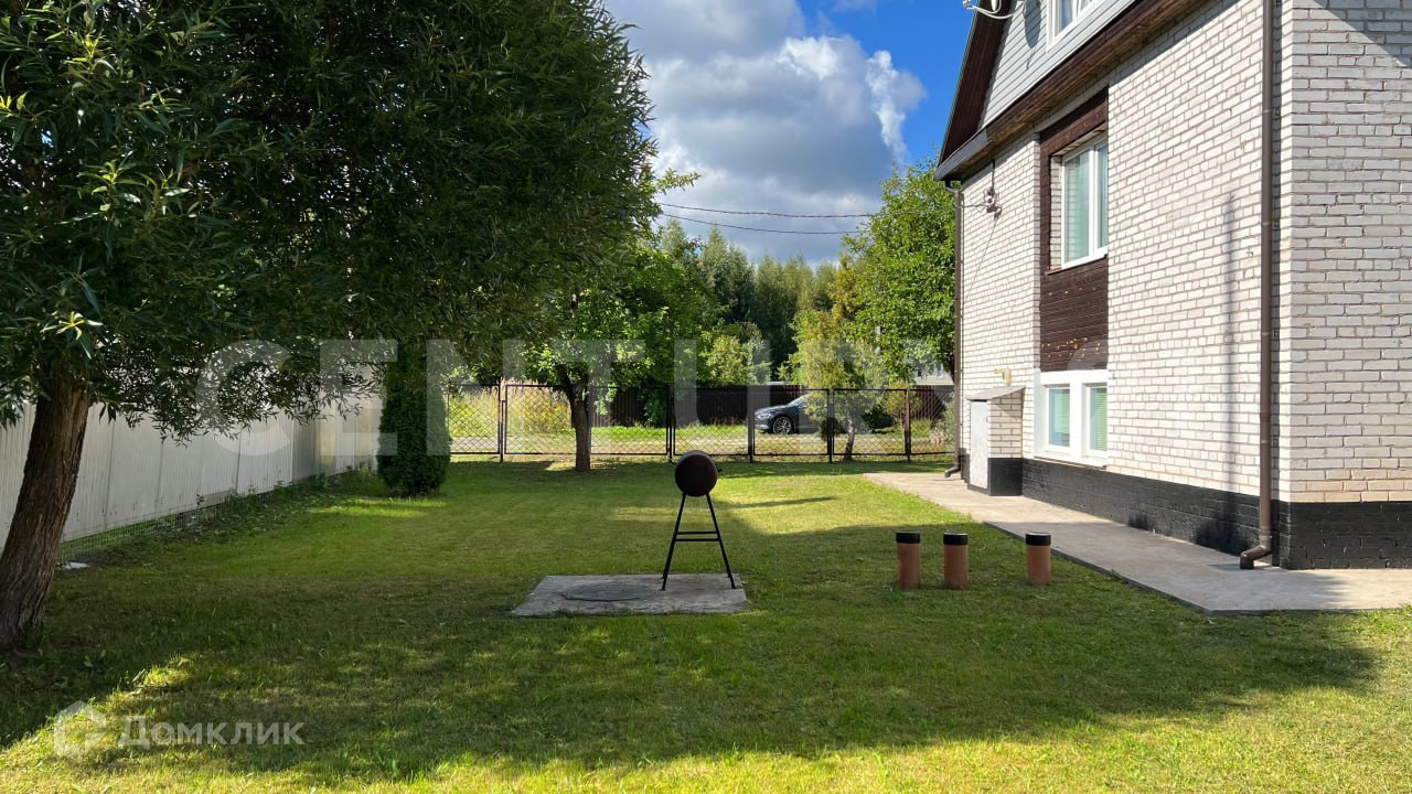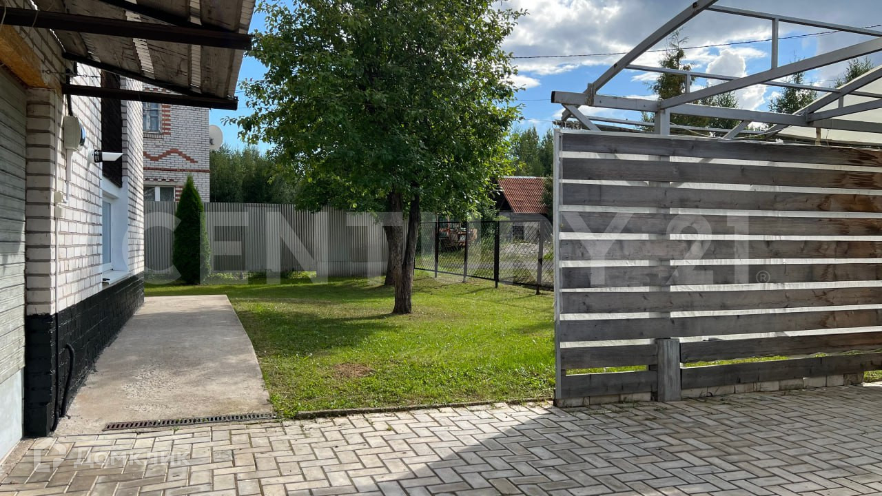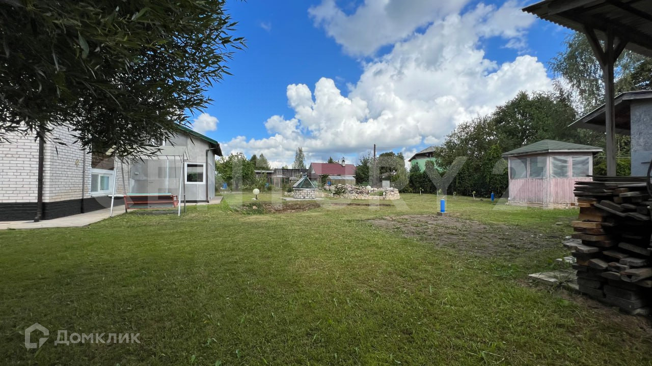 Земельный участок 12 соток правильной квадратной формы. Придомовая территория – очень ухожена, ровный газон с большим количеством плодовых деревьев и кустарников, туи, шаровидная раскидистая ива. Отличный навес для машины с плиточным полом. Сам участок очень сухой, затопления не бывает, дополнительного дренажа не требуется.