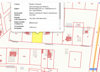 Каштановка, 8.5 соток, Земля в собственности.Пустой, Подъездная дорога с грунтовым покрытием, кадастровый номер 39:05:050901:112, электричество-есть возможность подключения, газ-есть возможность подключения, водоснабжение-нет, канализация-нет., Каштановка п, Железнодорожный переулок , продается участок, 8.6 соток, Номер лота: 4074761 |
