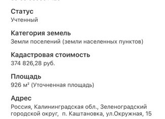 Земельный участок на продажу, 9.26 сот., Калининградское шоссе