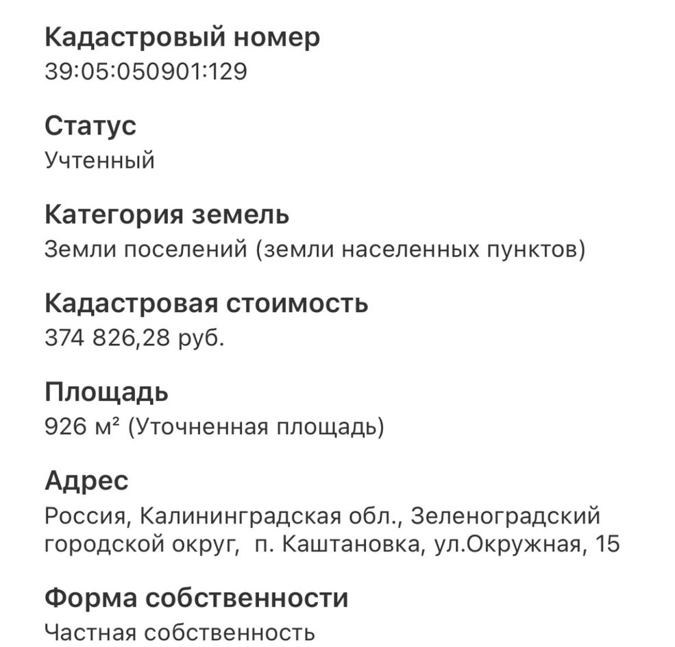 Продаётся участок из категории земель: земли населенных пунктов, с кадастровым номером: 39:05:050901:129