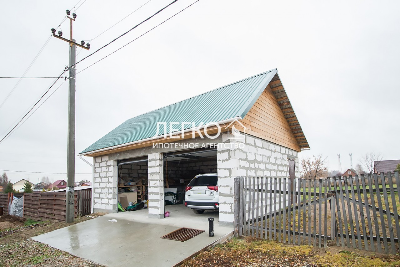 - на участке гараж на два машиноместа из сибита 200 мм с утепленной крышей, бетонным полом, ворота Alutech. Площадь 45,6 кв.м. позволяет обустроить дополнительное рабочее место и место для хранения инструментов и садового инвентаря.