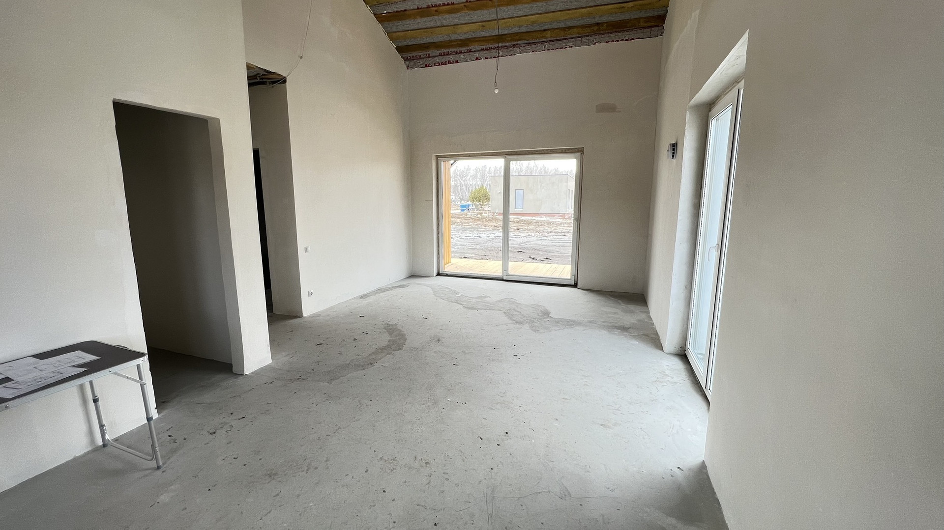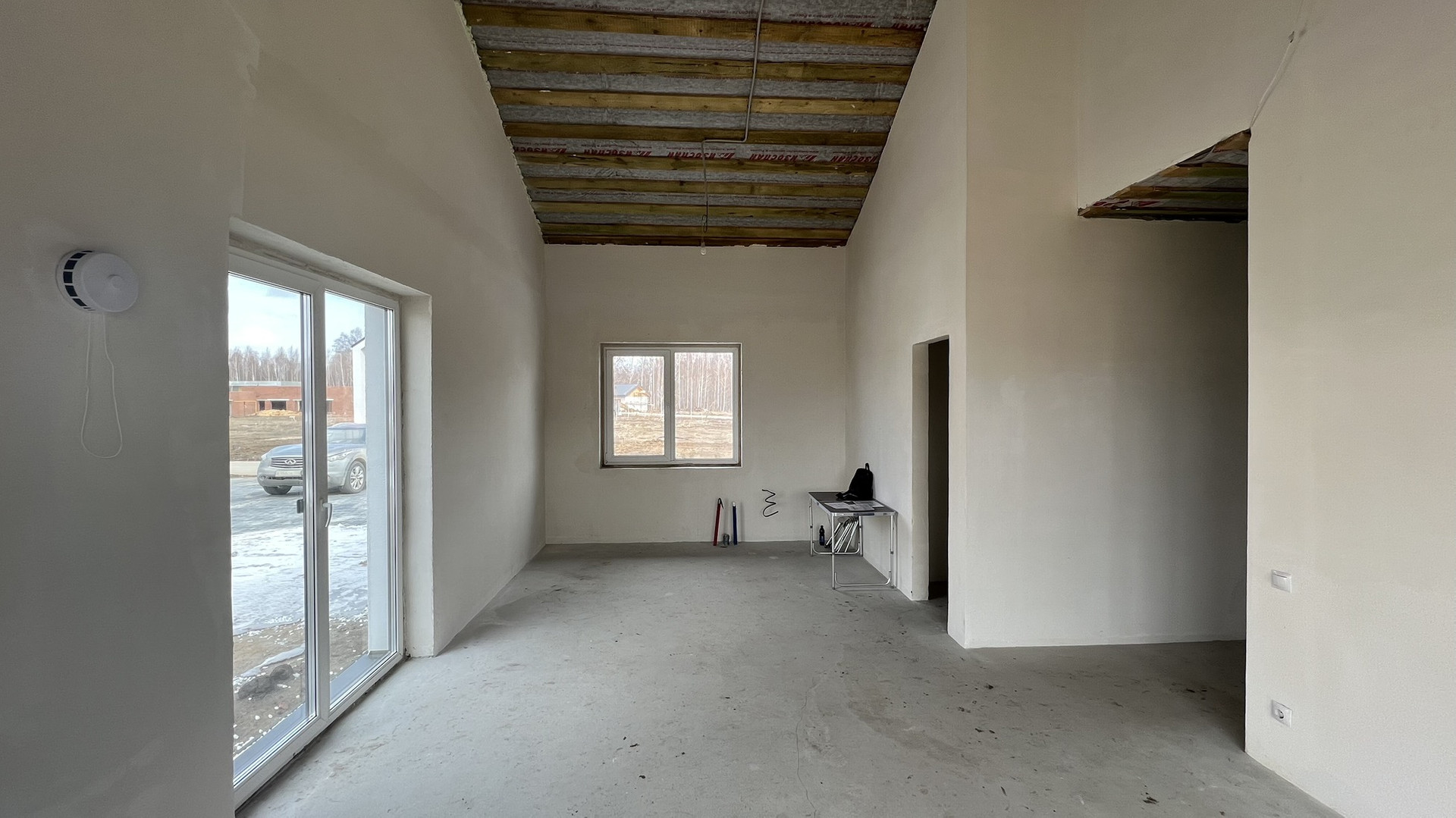 * Пол: залит под чистовую отделку (стяжка)