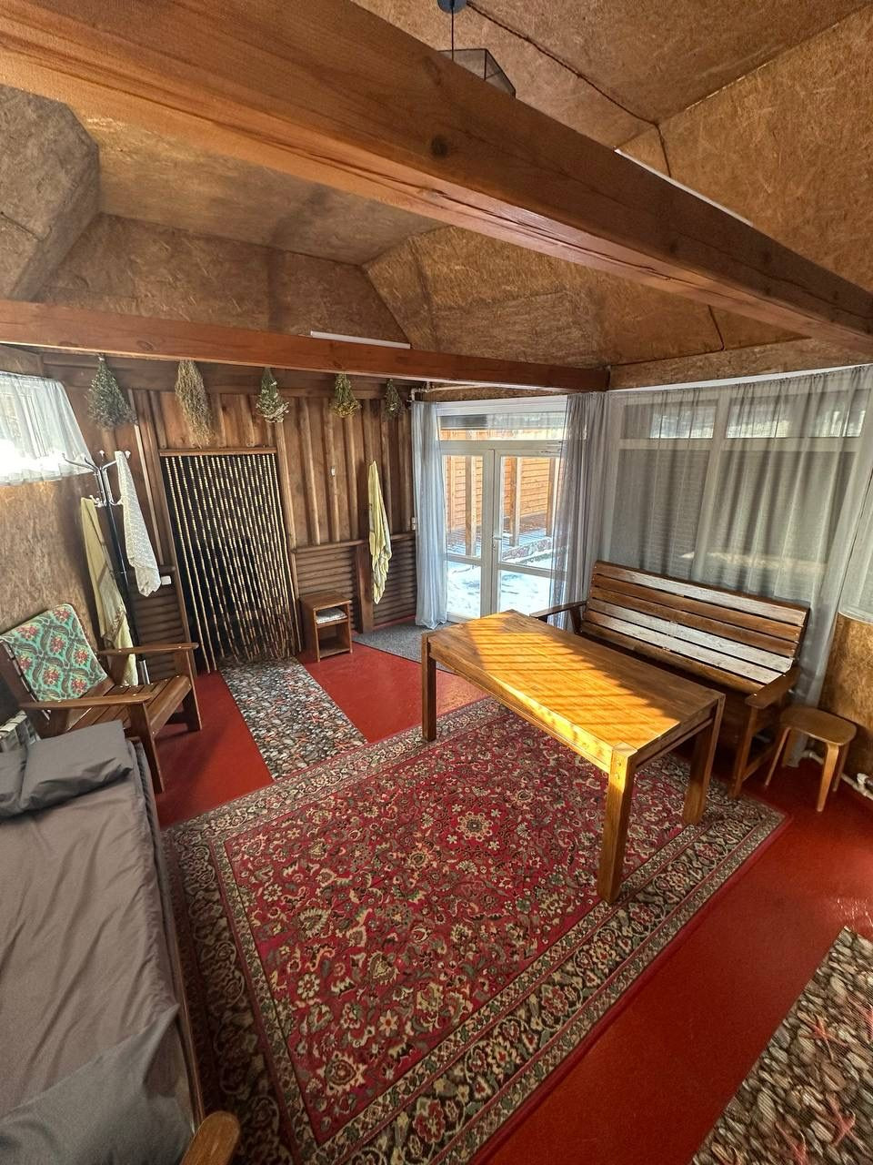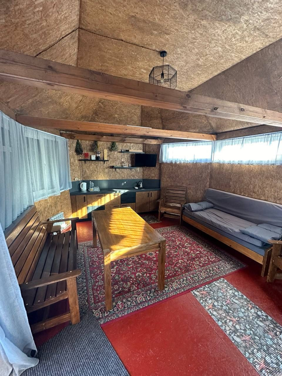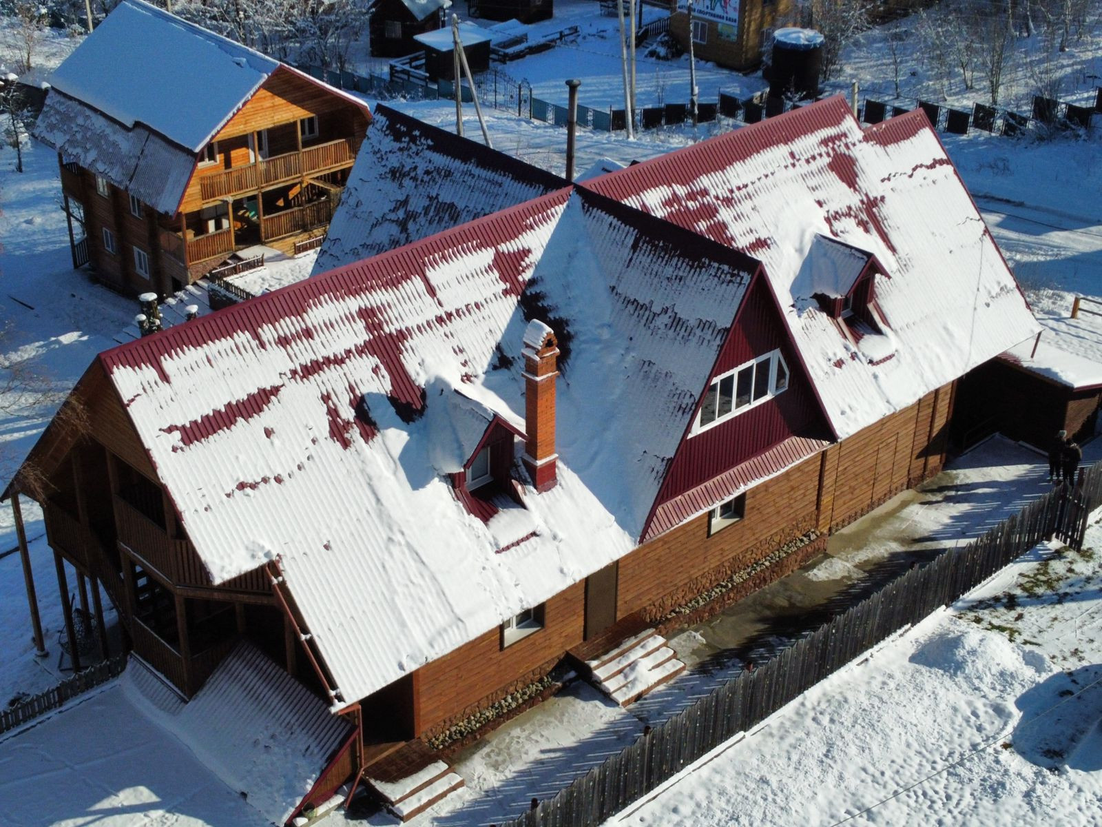 Структура дома включает три этажа. На первом этаже находится гараж, столовая зона и просторный каминный зал, создающий атмосферу уюта и тепла. На втором этаже расположены три отдельных номера, а на третьем этаже - четыре номера и общая кухня. Каждый номер оборудован собственным санузлом и душевой кабиной, обеспечивая комфортное проживание для гостей.