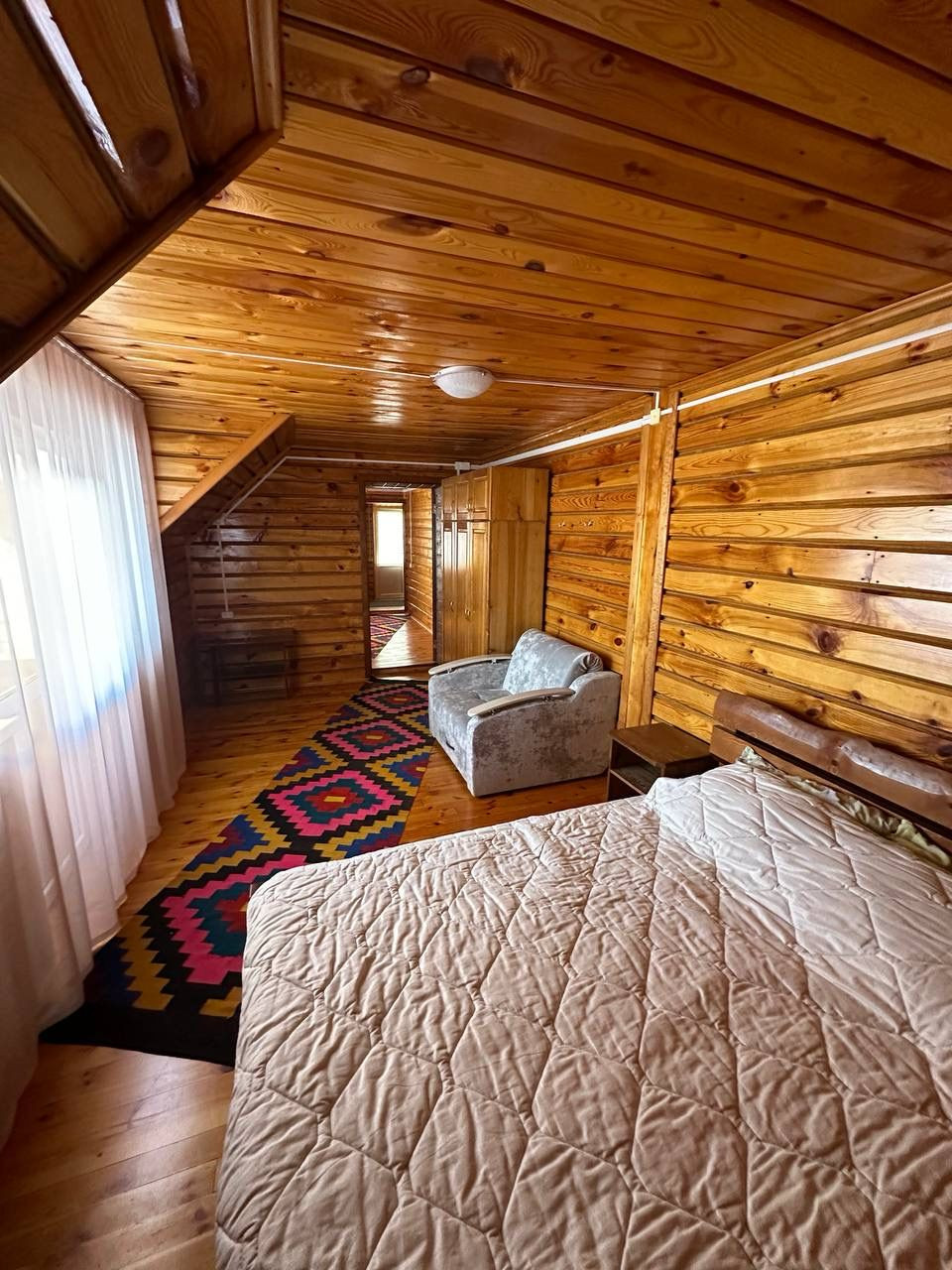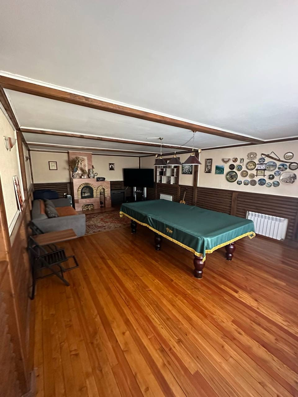 Продается просторный дом общей площадью 350 квадратных метров, расположенный на участке впечатляющего размера - 1 гектар. Дом выполнен из кирпича, облицован деревом с имитацией под брус, что придает ему уютный и традиционный вид.