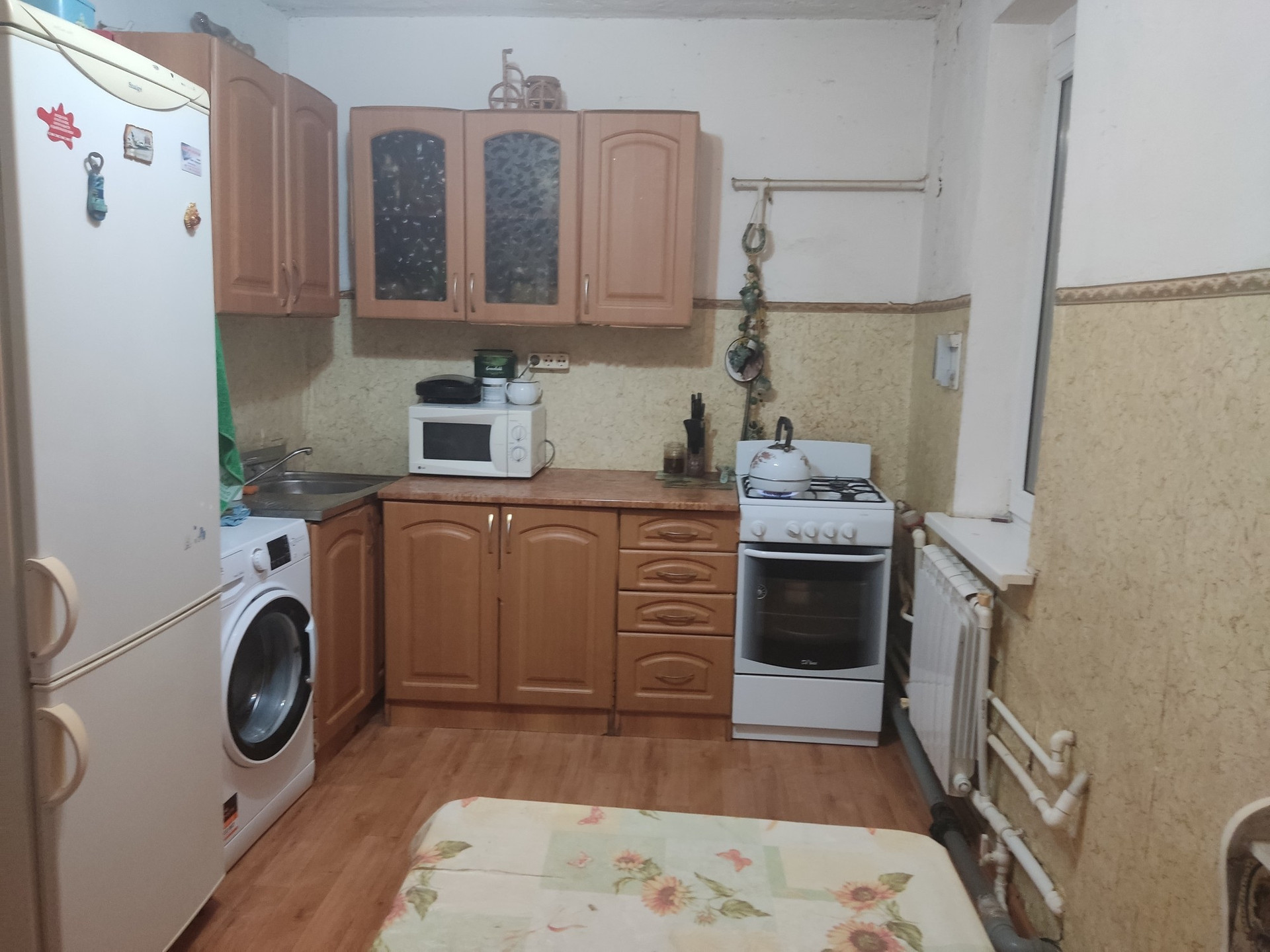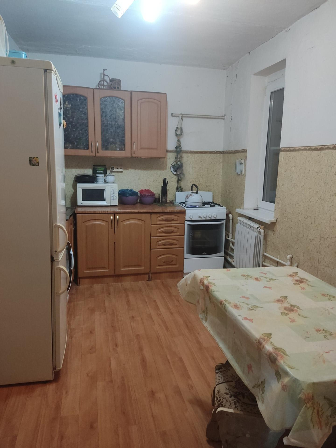Продаётся дом жилая площадь 70  м, зал, две спальни, кухня, прихожая, просторный коридор, раздельный санузел, кирпичная веранда. Электричество, вода, канализация, отопление-настенный двухконтурный котёл (новый), тёплый пол (не электрический) во всём доме, евро окна, телевидение, интернет. Земли 6 соток. Имеется летняя кухня со всеми удобствами (свет, газ, канализация)в ней же подвал, гараж с ямой, два подсобных помещения.  Рядом детский сад, школа в 20-ти минутах пешком. Маршрутки в Ростов ходят каждые 30 мин., остановка рядом. Тихая спокойная улица. Возможен торг.