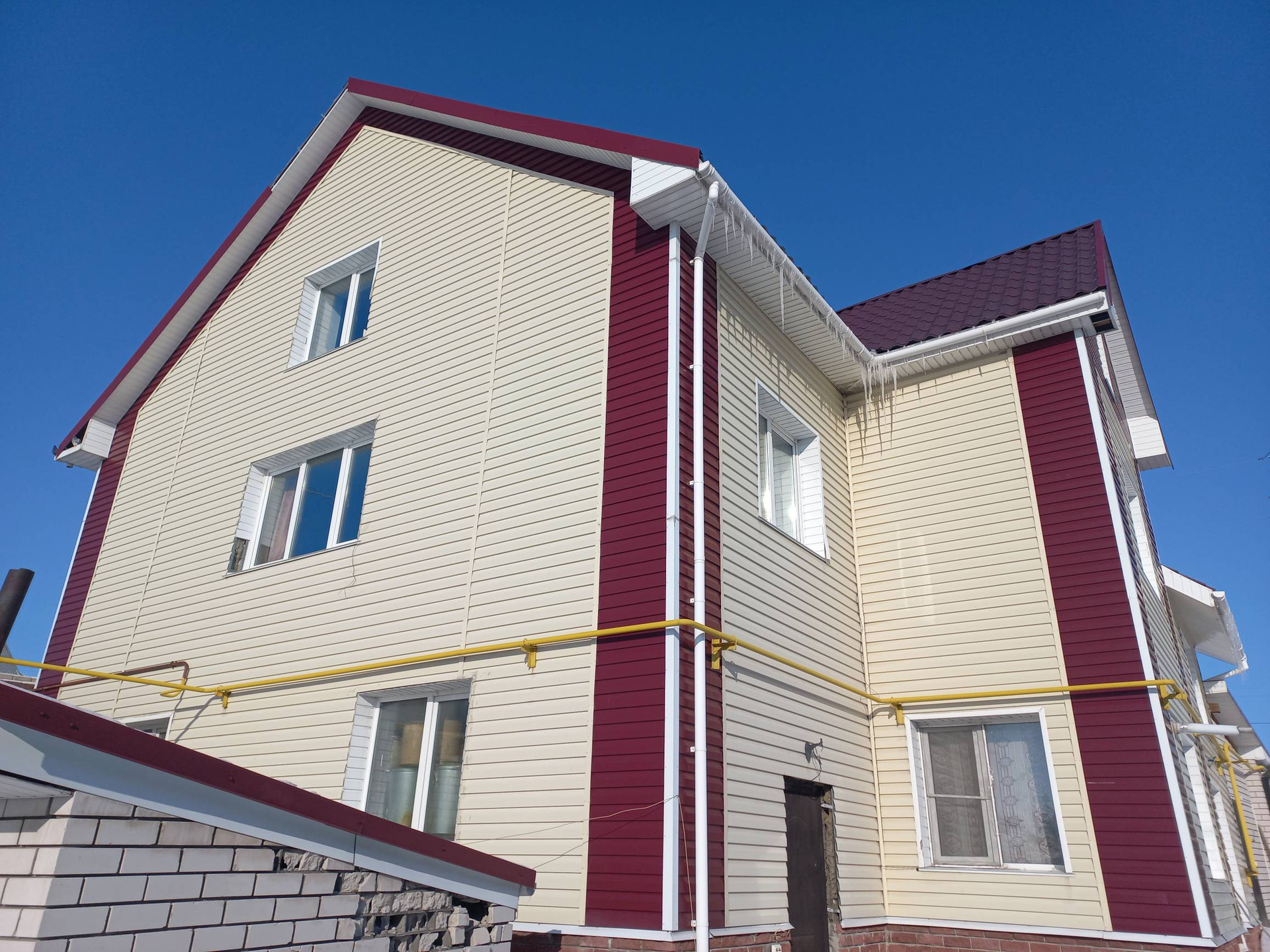 Дом построен из газобетона, отделка сайдинг. Перекрытия - жб плиты. Фундамент - монолитный.