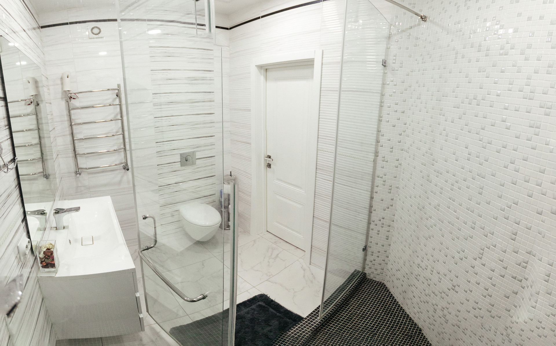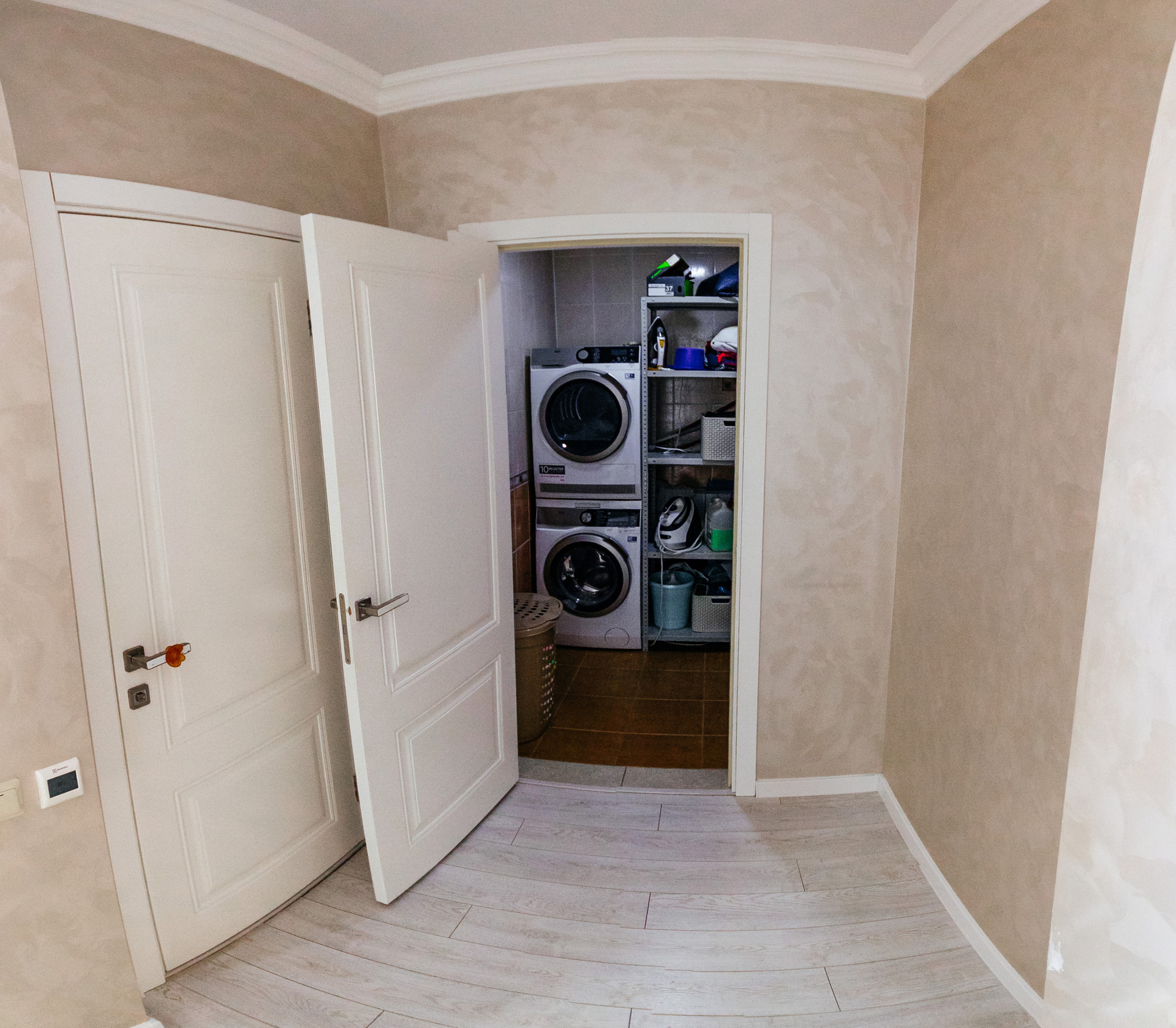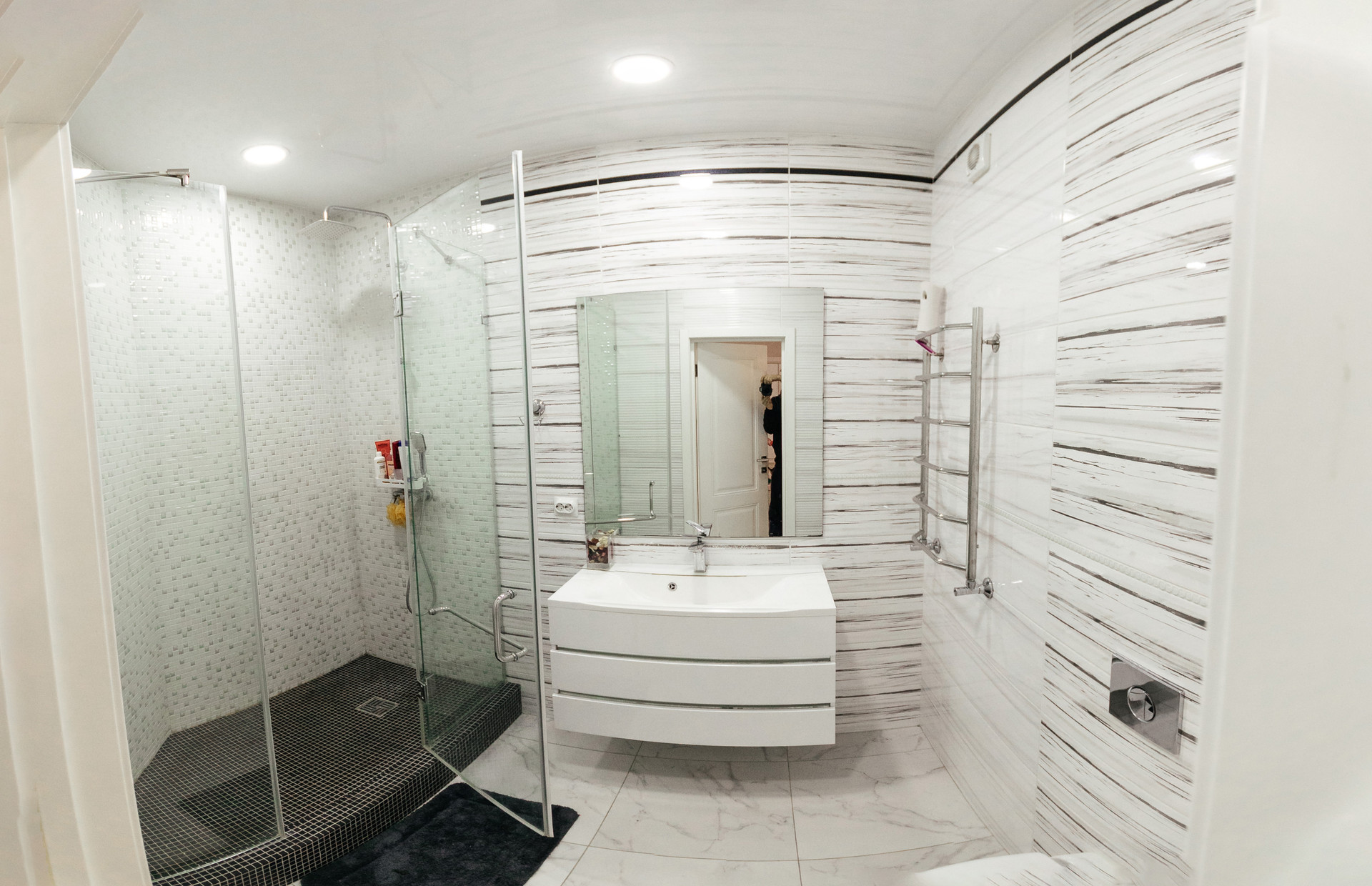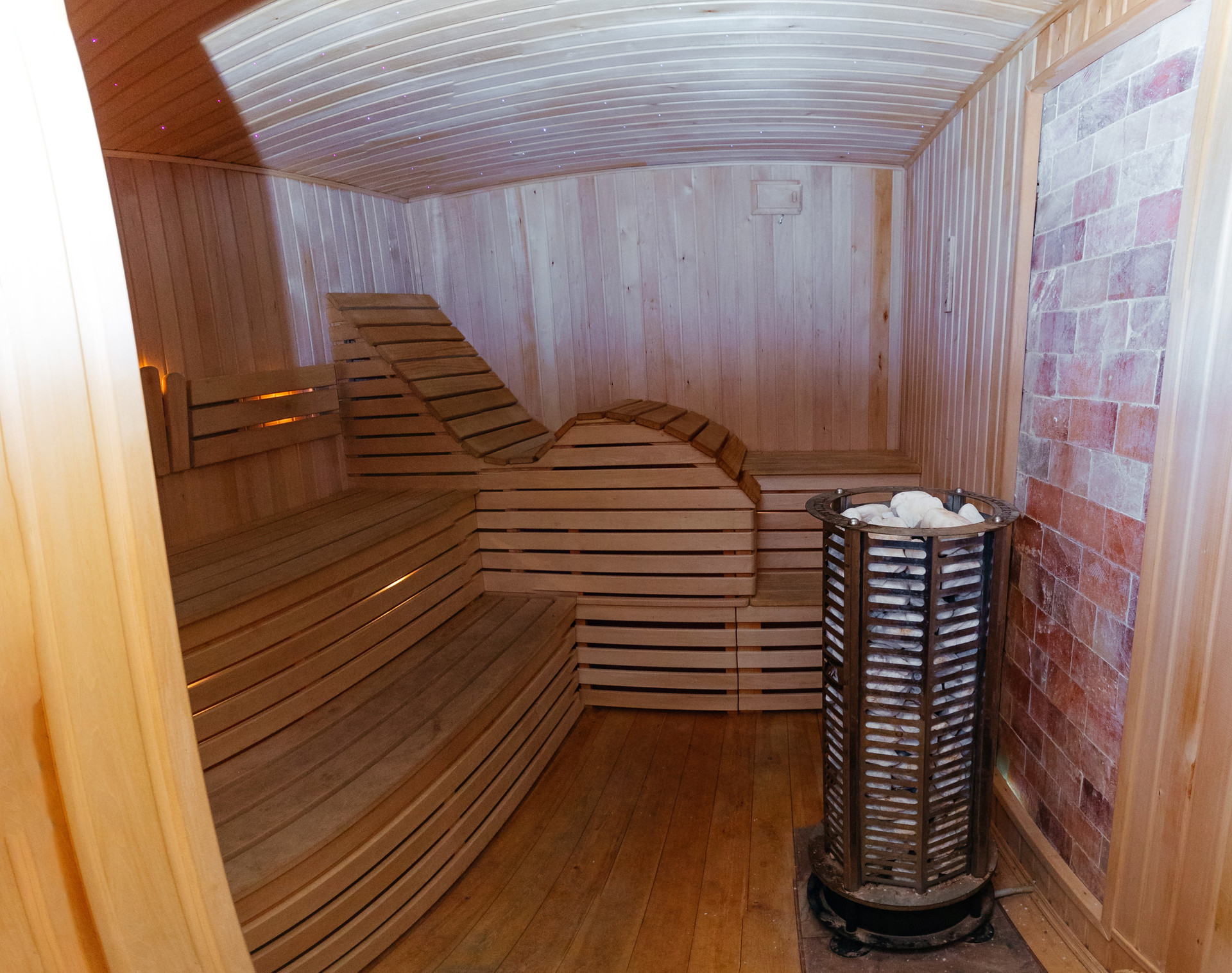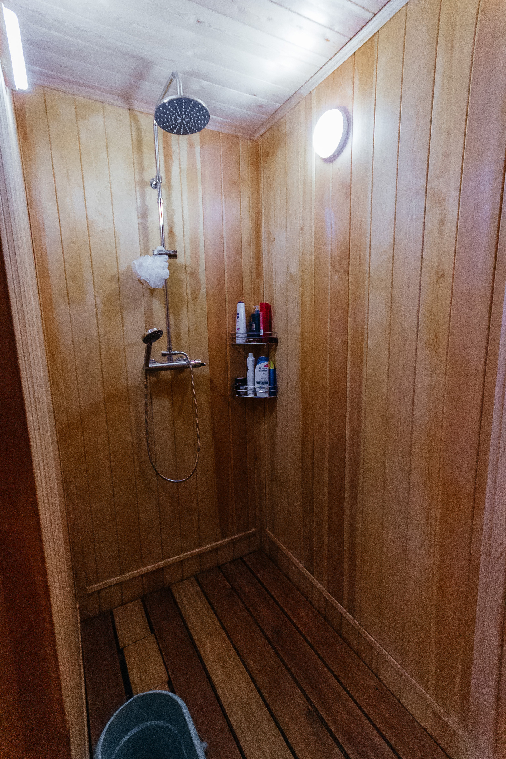 Вход в сауну с комнатой отдыха, душем и санузлом.