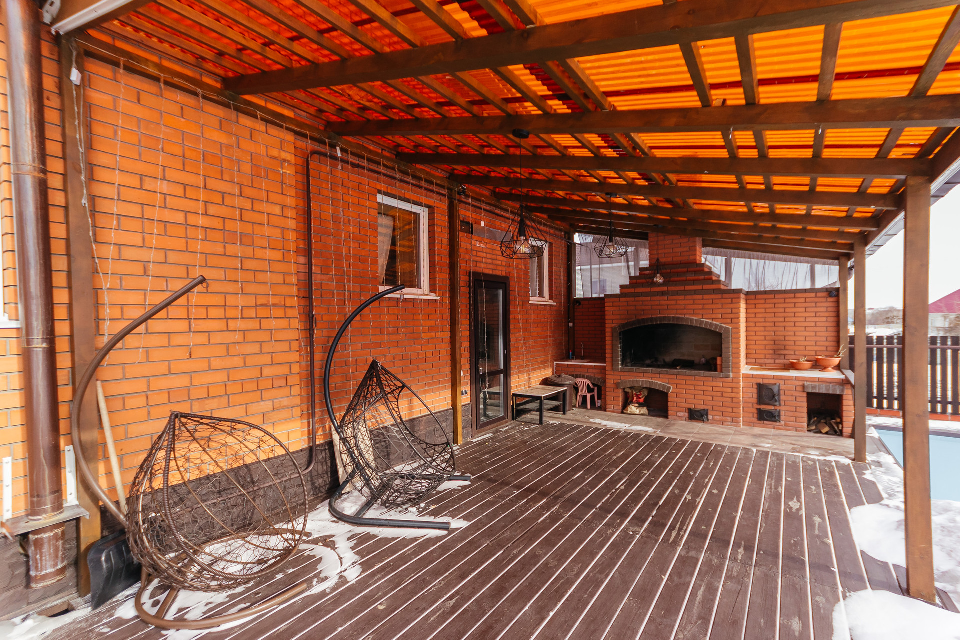 На заднем дворе на веранде оборудован Мангал, тандыр, место под казан