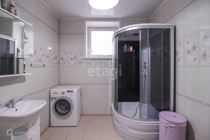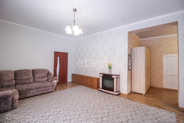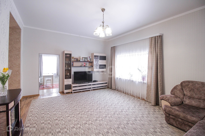 Высота стен 3м. Все комнаты светлые, дом теплый. В большей части дома сделан качественный ремонт: натяжной потолок, 2 санузла отделаны кафелем, теплый пол во всех комнатах дома, на стенах обои в светлых тоннах. Установлены доброкачественные межкомнатные двери, пластиковые окна, входные двери. Дополнительной площадью для хранения вещей является подвал под всем домом, в нем проведен свет и отопление. Еще большим преимущество в вашей покупке будет наличие двух входов,с их помощью можно разделить дом пополам.