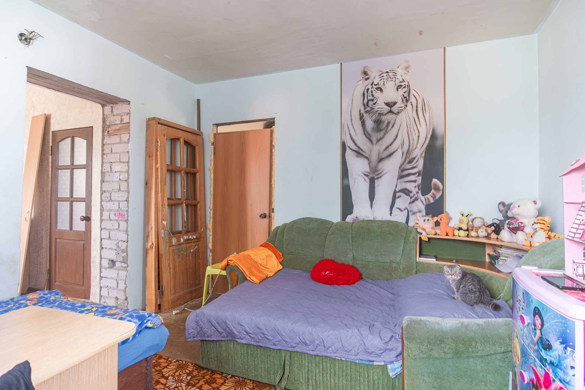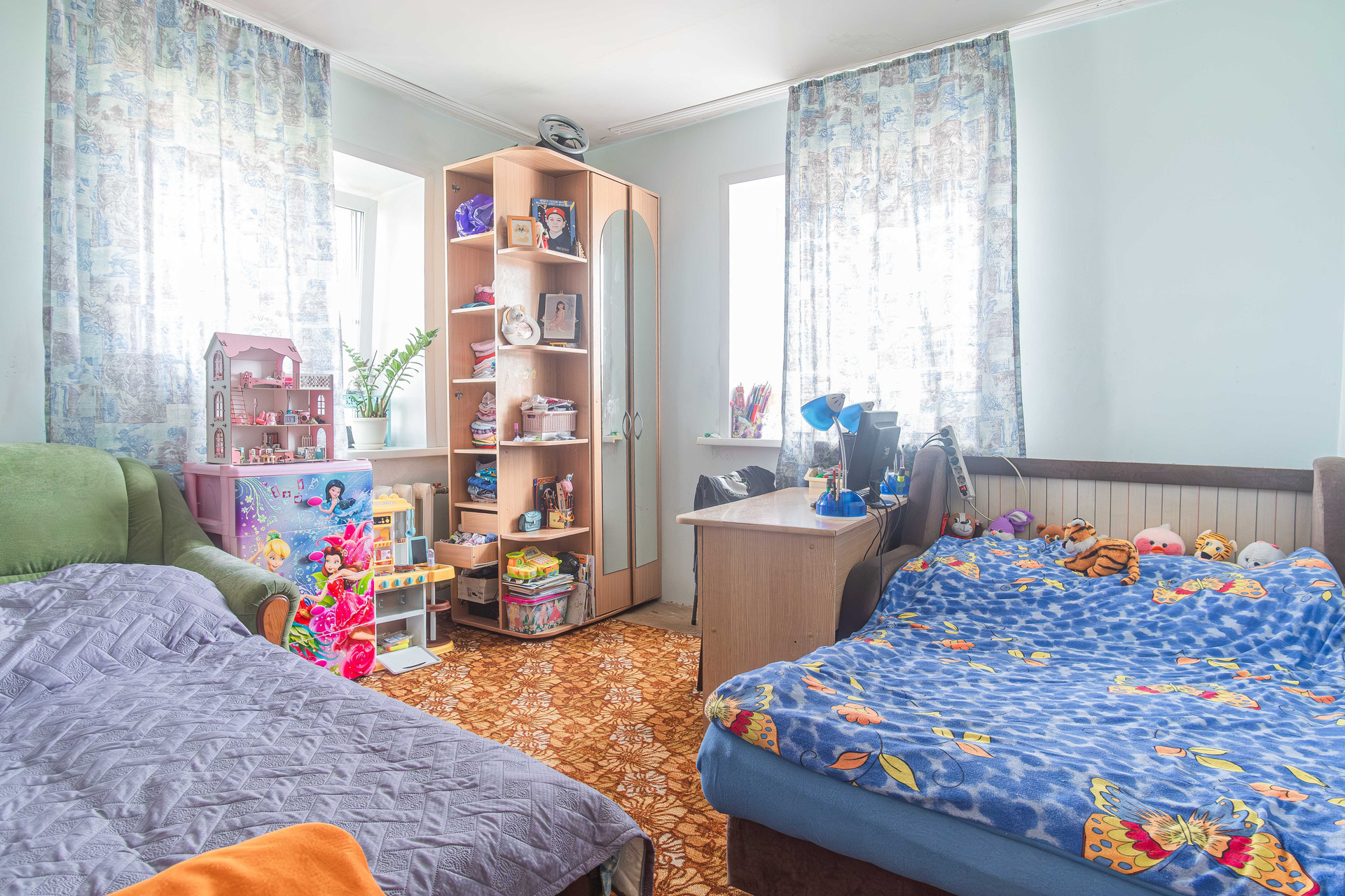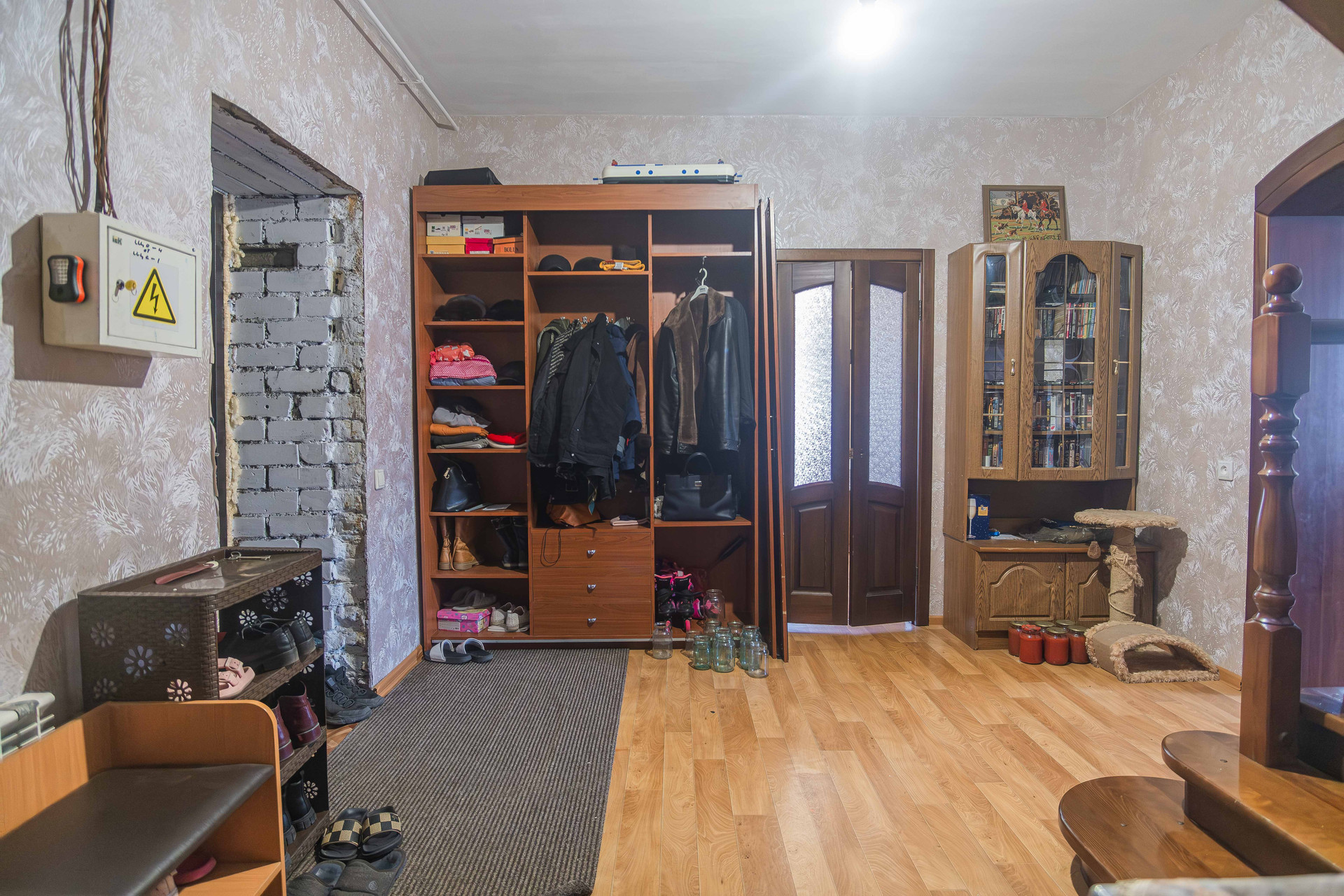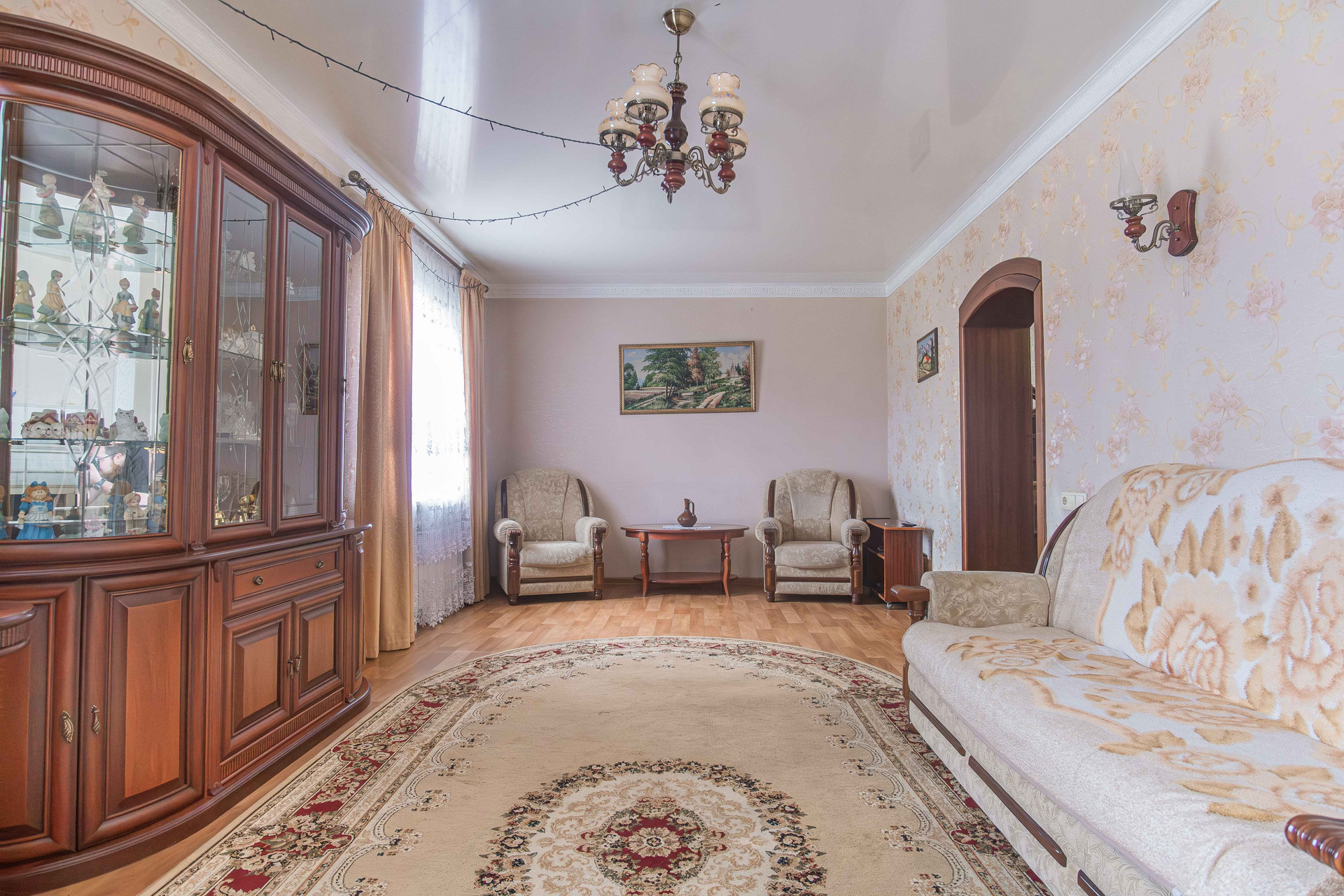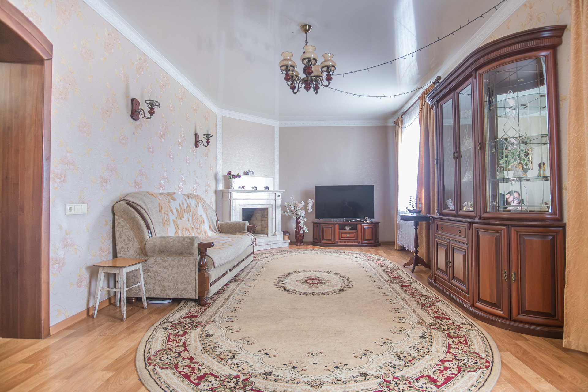 Конструктив дома: кирпич, обшит сайдингом. Канализация, газовое отопление, гараж с автоматическими воротами, баня, участок огорожен забором. Планирорвка позволяет проживать большой семье. Два входа в дом. На первом этаже расположены кухня, зал, рабочий кабинет, сан узел с душевой кабиной. На втором этаже три отдельные спальни.