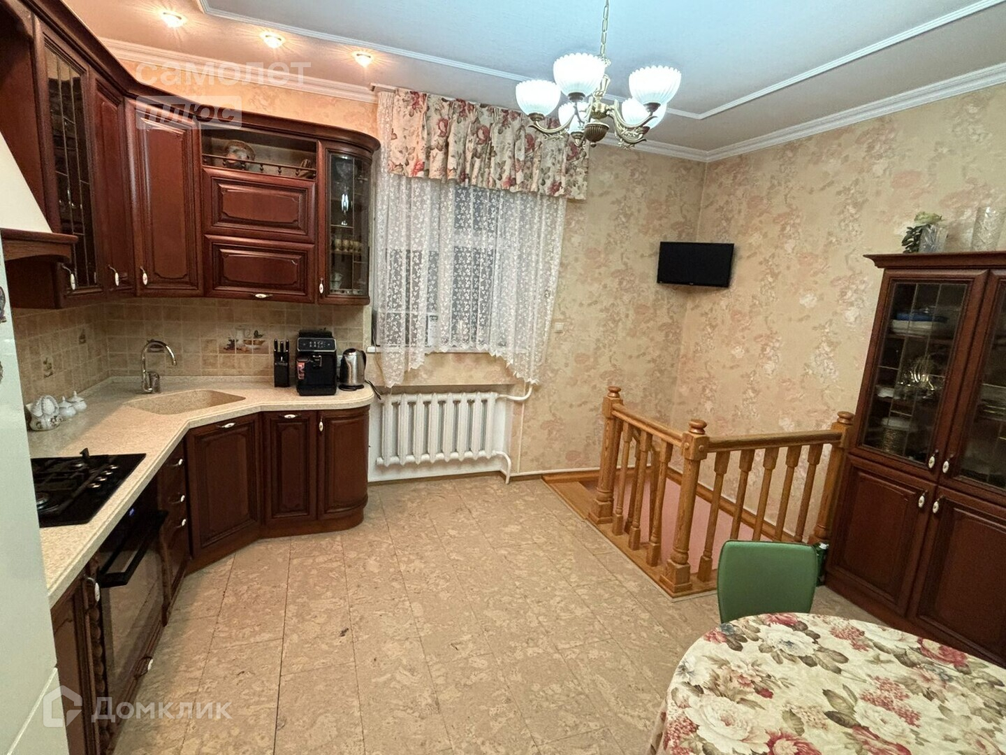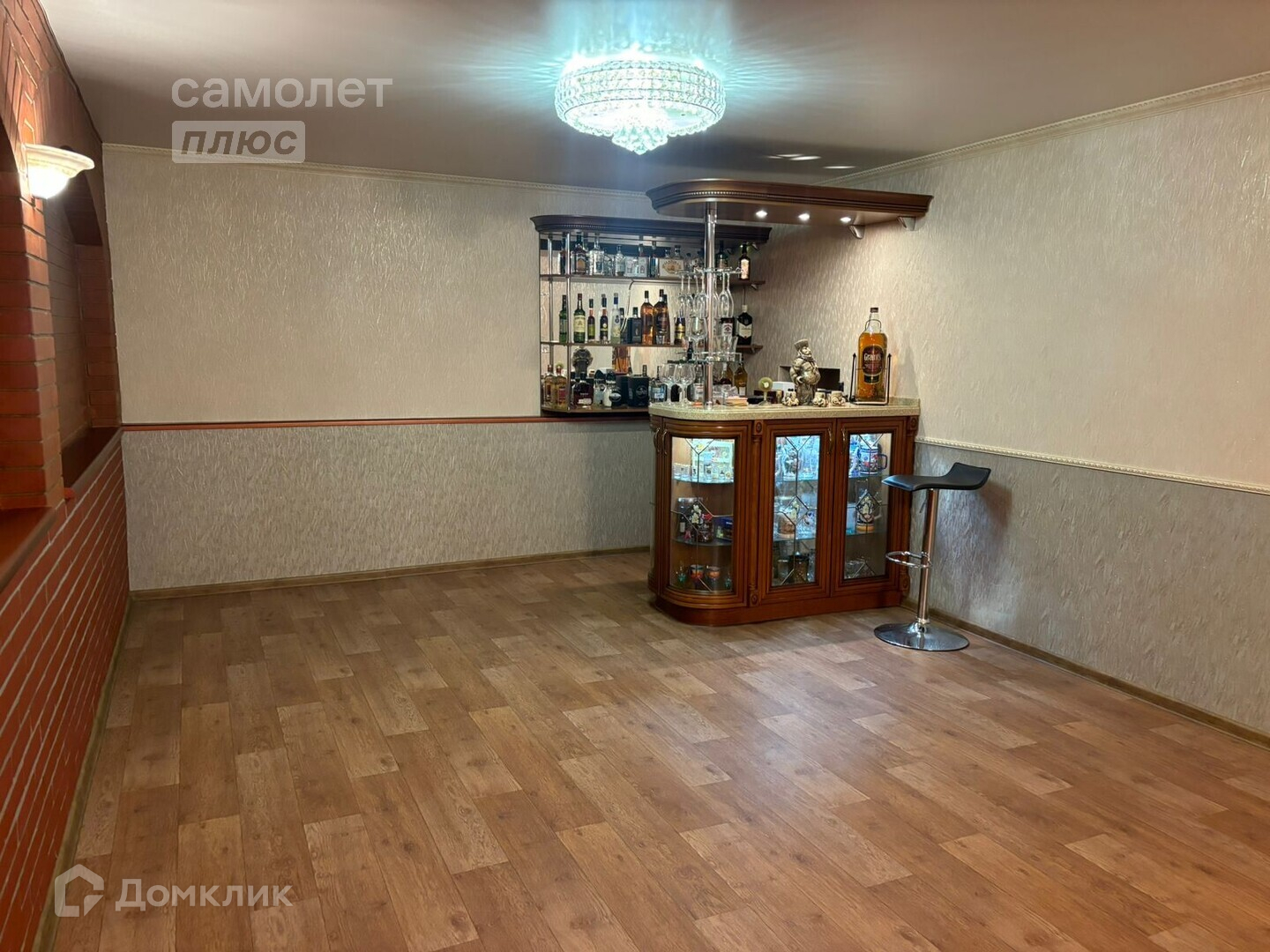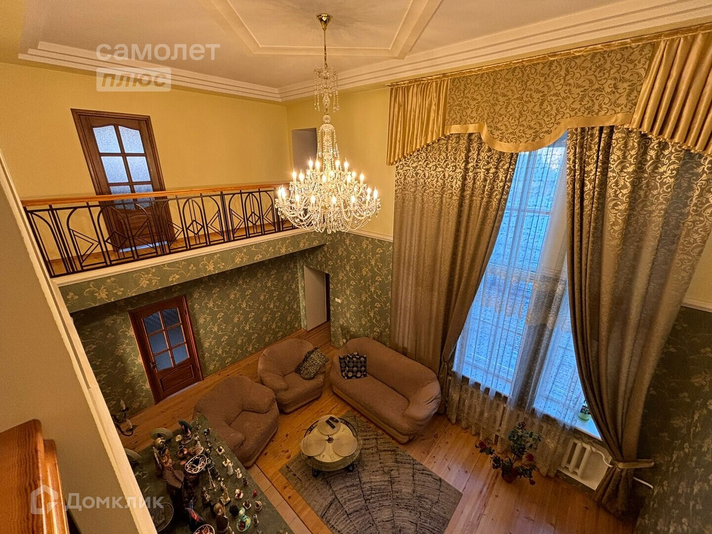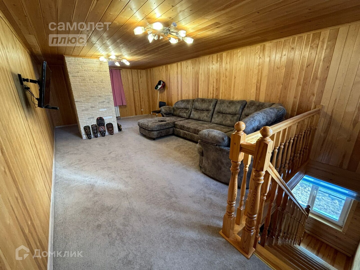 Холл, гостиница с камином и громадной люстрой из чешского хрусталя, две спальни, кухня, санузел, ванна. Лестница из массива сосны.