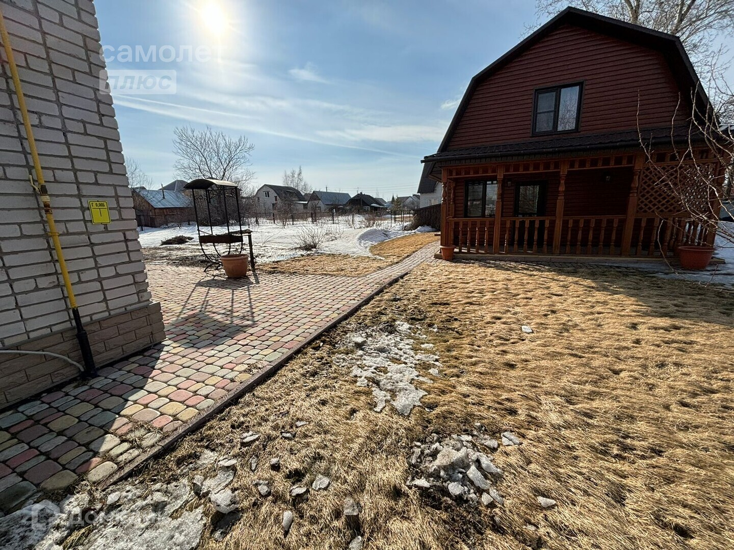 Придомовая территория, облагорожена тротуарной плиткой и засеяна газоном.