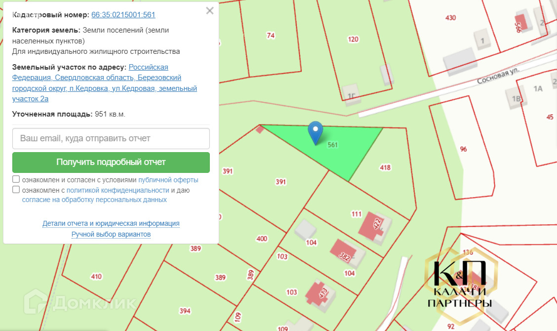 Продаётся участок в Березовский р-н, посёлок Кедровка ул. Кедровая 2А, в 27 км от Екатеринбурга.