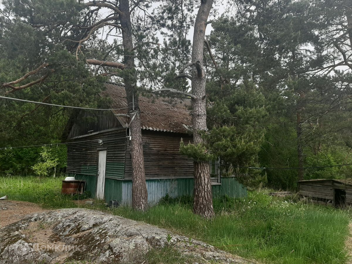 На скале жилой одноэтажный дом финской постройки, с мансардой -  как полноценный второй этаж, без отделки.