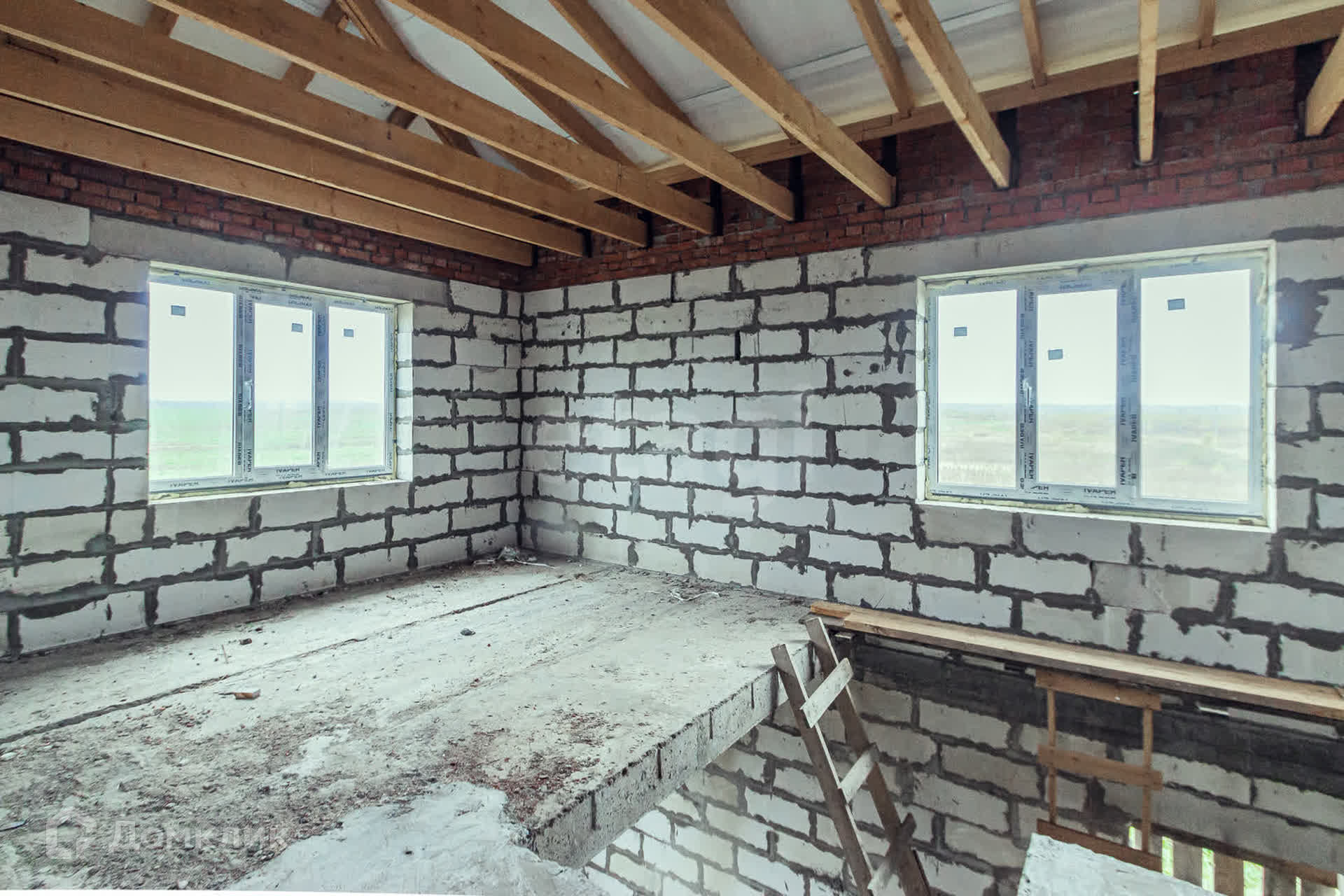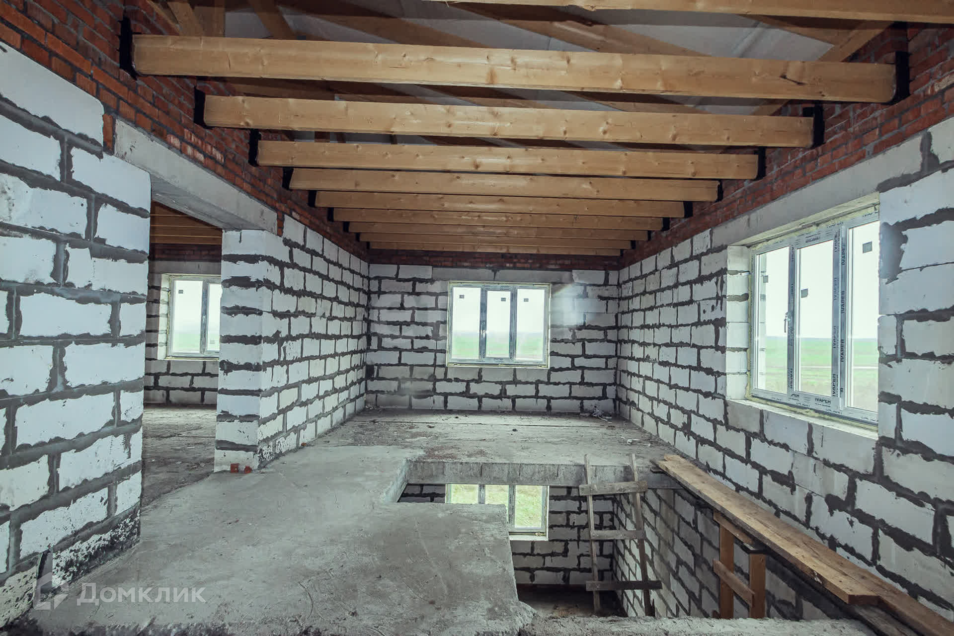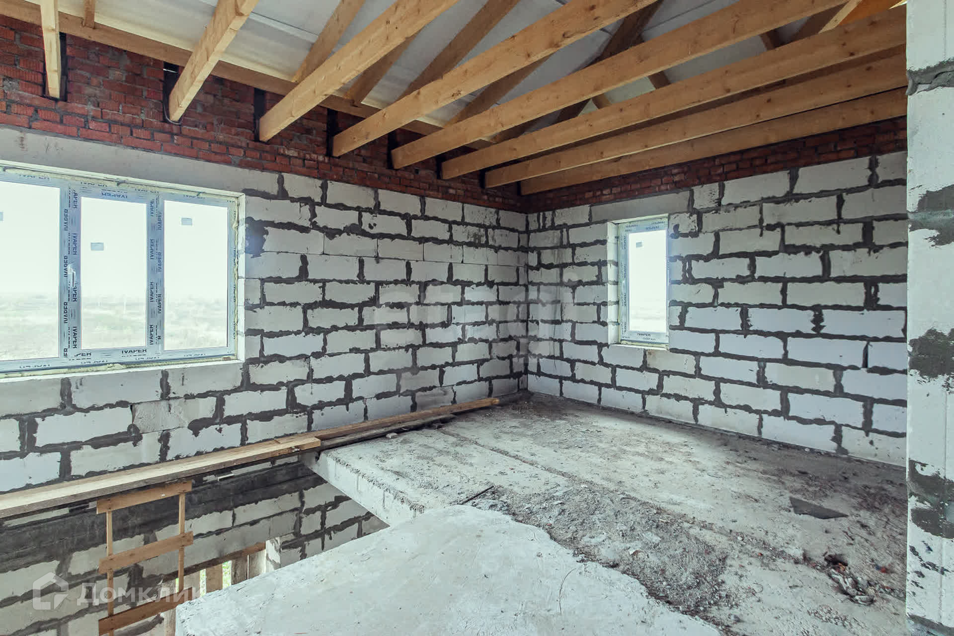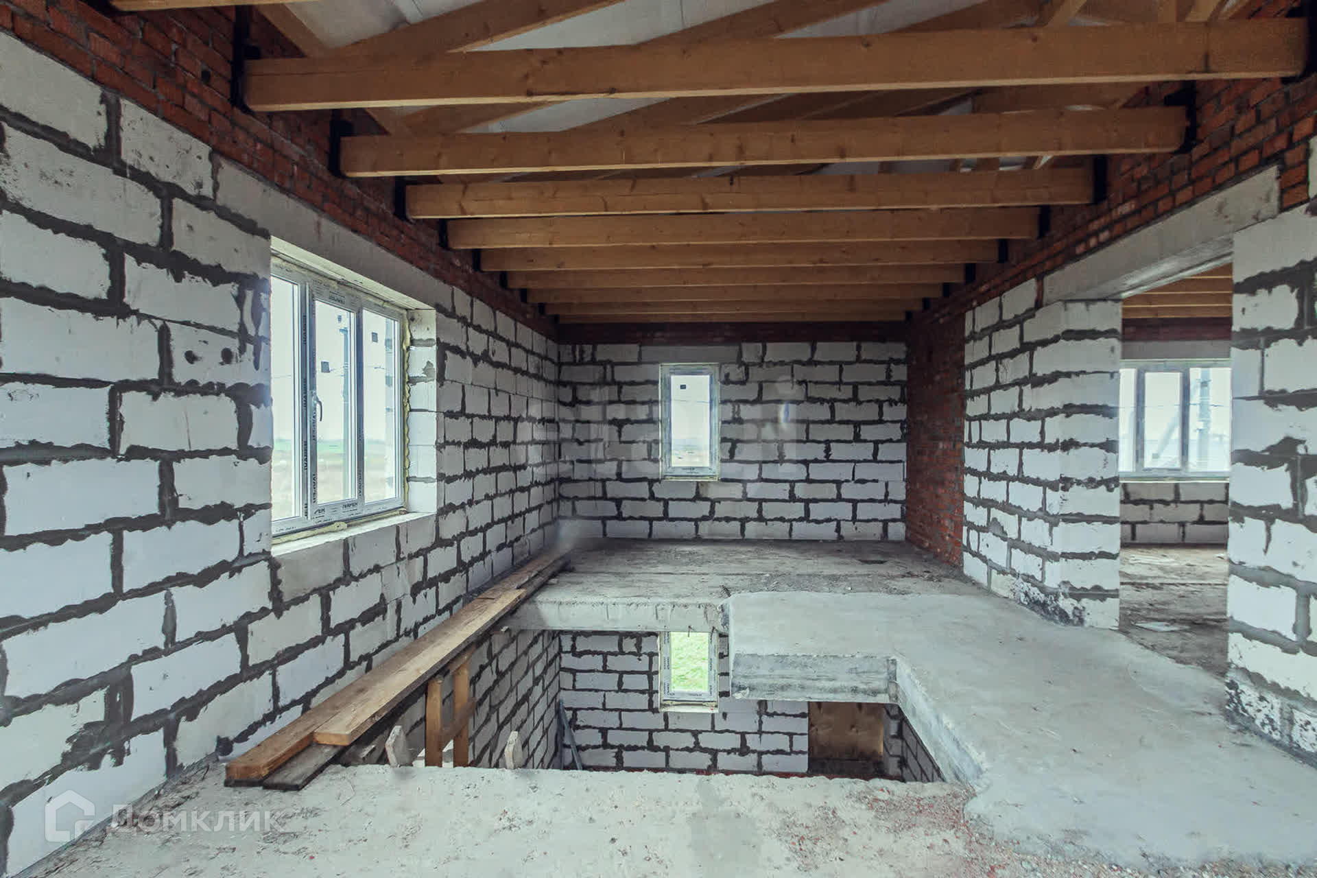 Дом на монолитной плите из газобетона, перекрытие первого этажа-железобетонные плиты.