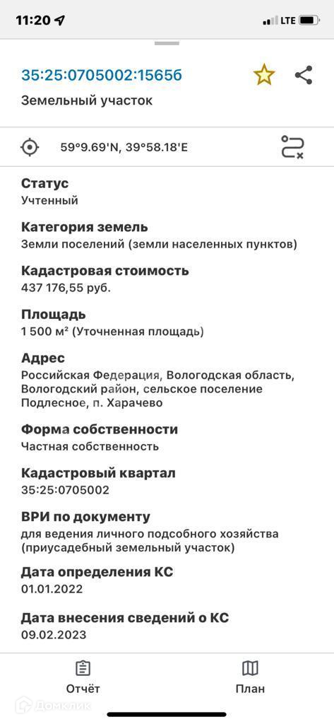Участок в п. Харачево в 2 км от города. Рядом с асфальтом. Газ на границе участка. Есть хозяйственная постройка 30 кв.м. Кадастровый номер: 35:25:0705002:1565
