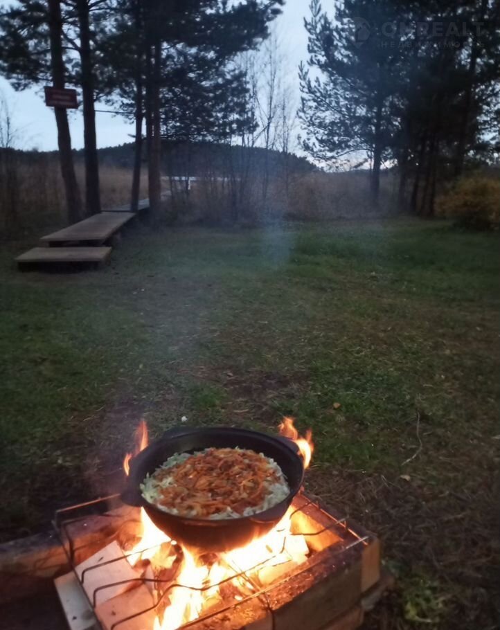 На улице у домика расположена зона барбекю. Есть лавка, столик, мангал, шампура, решетка, костровая чаша (дрова для костра входят в стоимость аренды). Есть стоянка для авто.