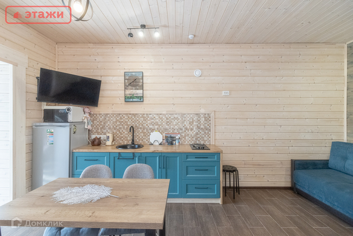 Два дома полностью укомплектованы мебелью, кухонный гарнитур, варочная панель, микроволновая печь, чайник, холодильник с морозилкой, посудой, столовыми приборами, двухспальная кровать, телевизор, в санузле тумбочка с раковиной, бойлер, душевая кабина, теплые полы.