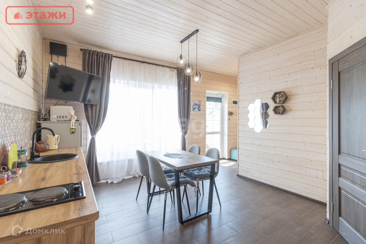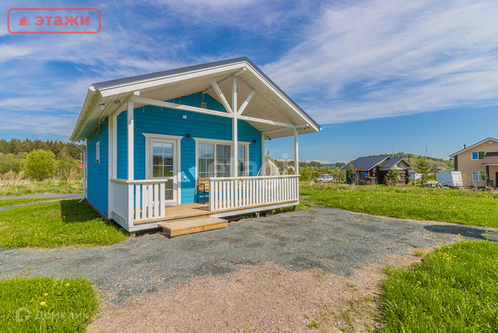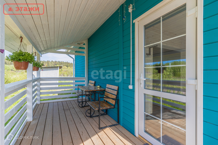 В доме просторная кухня-гостиная, спальня, санузел с душем, веранда, открытая терраса.