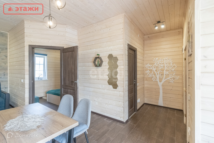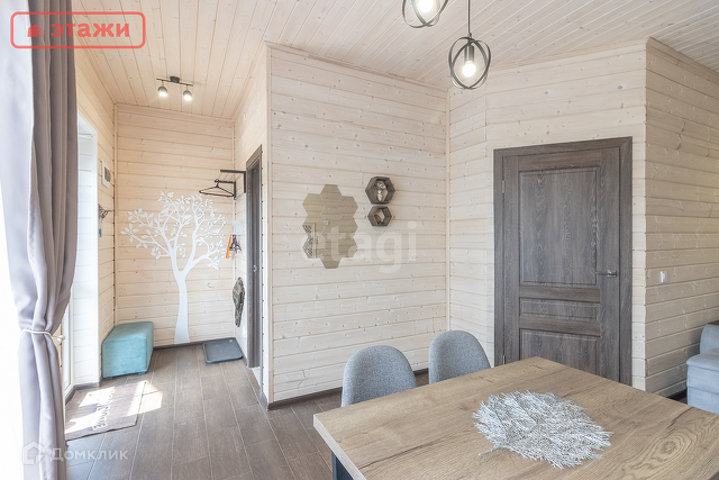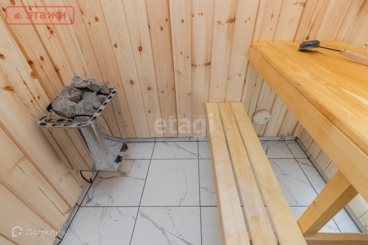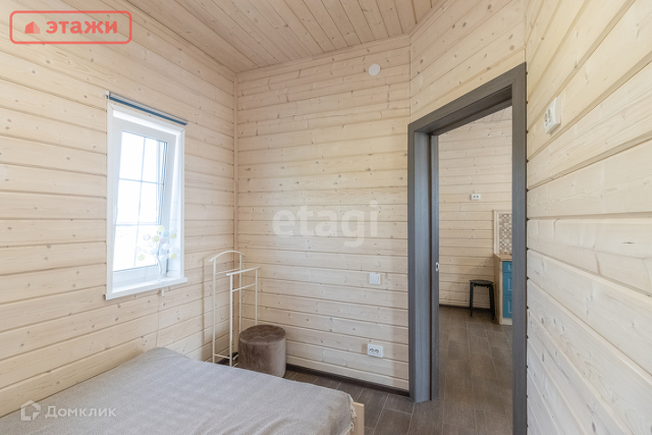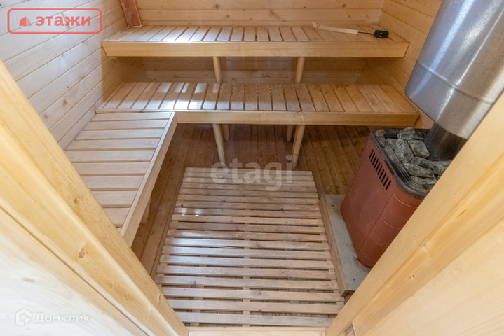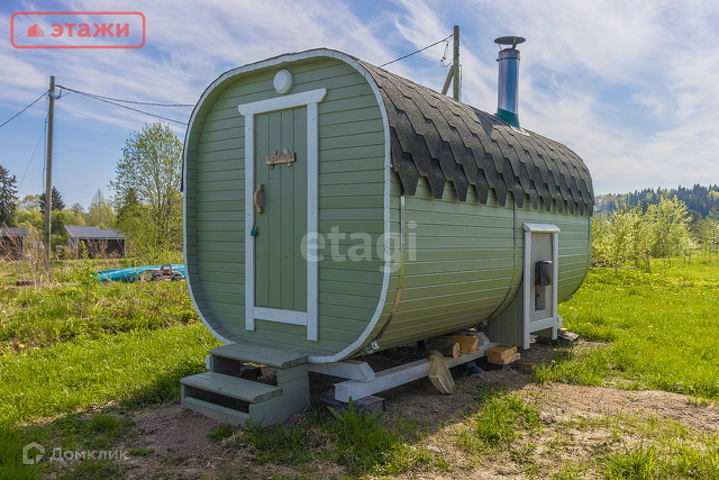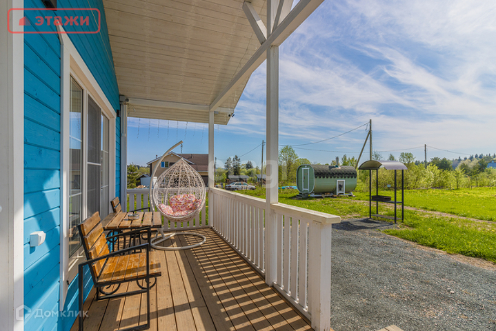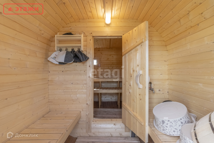 В доме просторная сауна, кухня-гостиная, спальня, санузел с душем, веранда, открытая терраса.