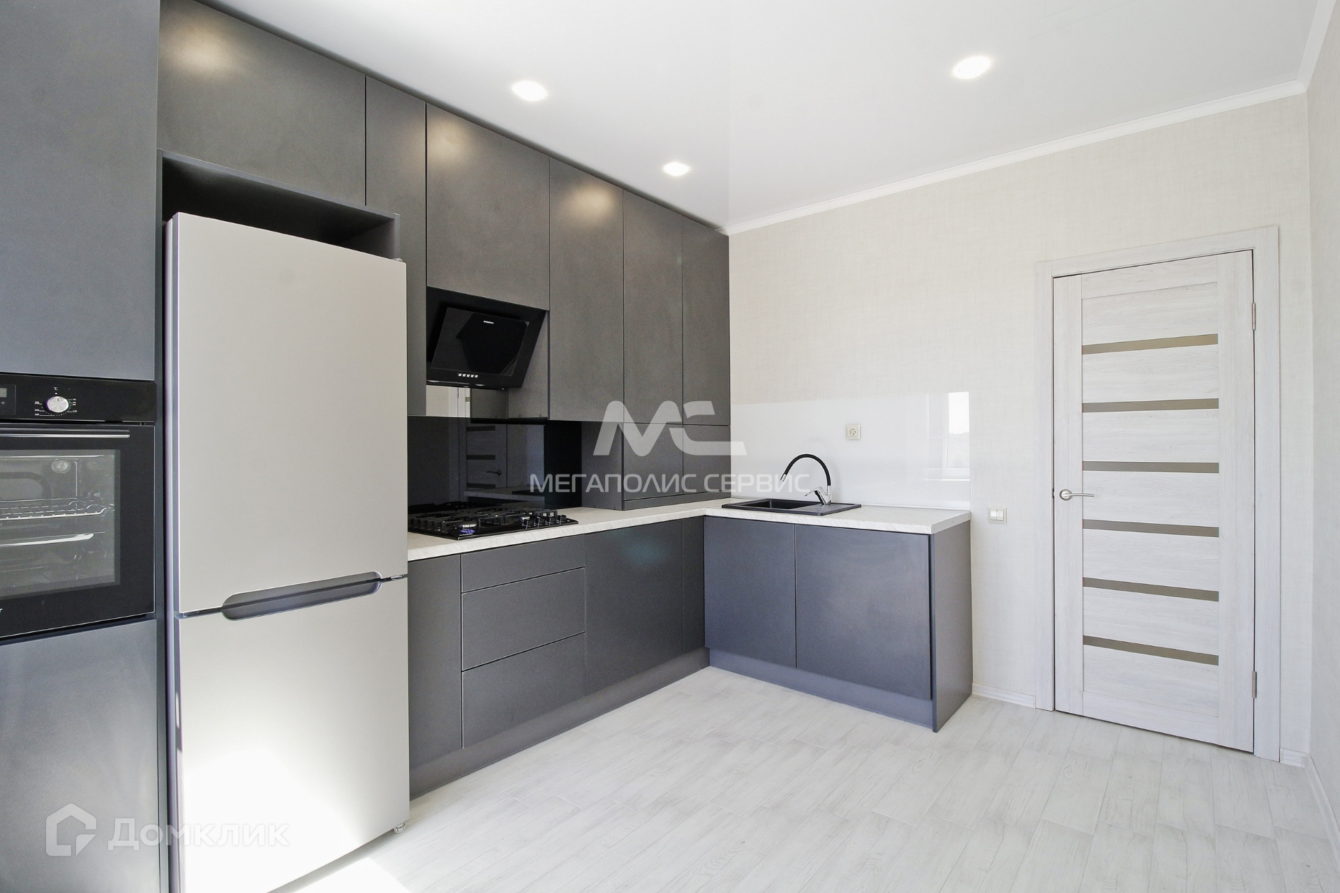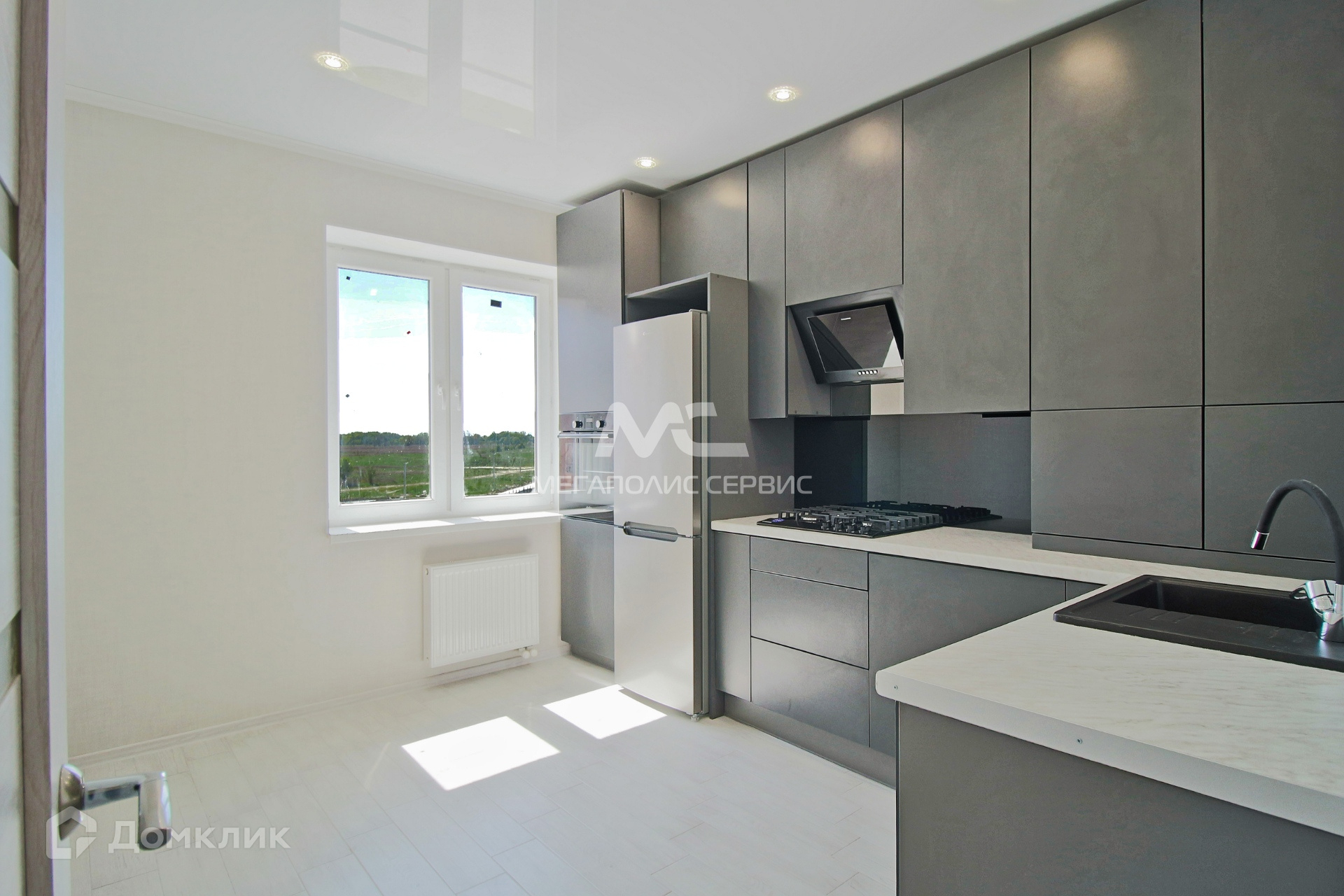 В квартире сделан качественный ремонт - обои, натяжные потолки, в комнате ламинат, в кухне, прихожей и санузле - напольная плитка.