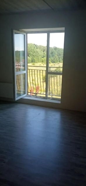 Из окна вид на лесной массив, чистый воздух.