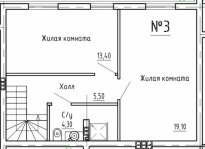 2 этаж - 2 спальни 19,1 кв.м и 13,4 кв, санузел