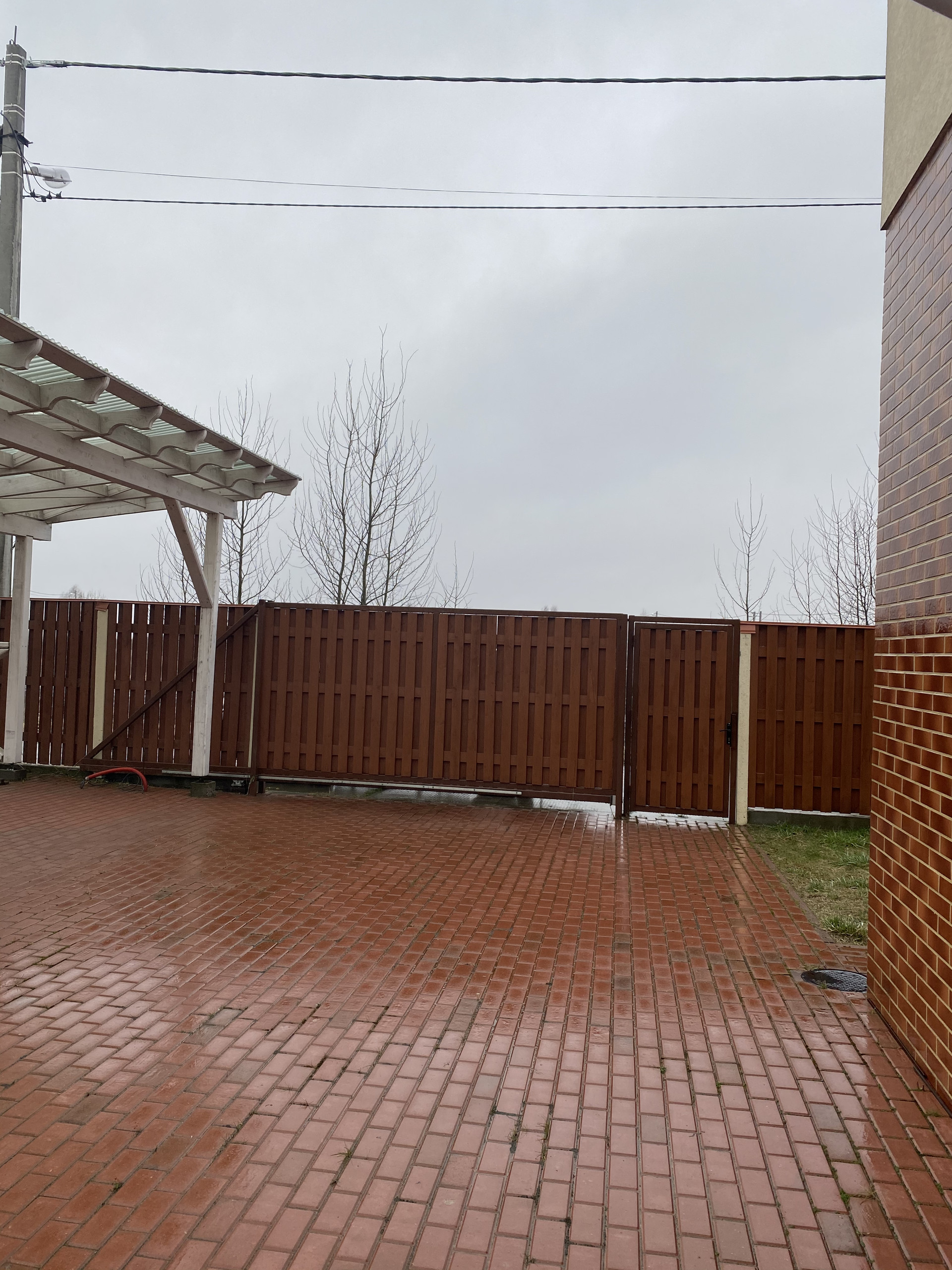Огороженная территория с откатными воротами.