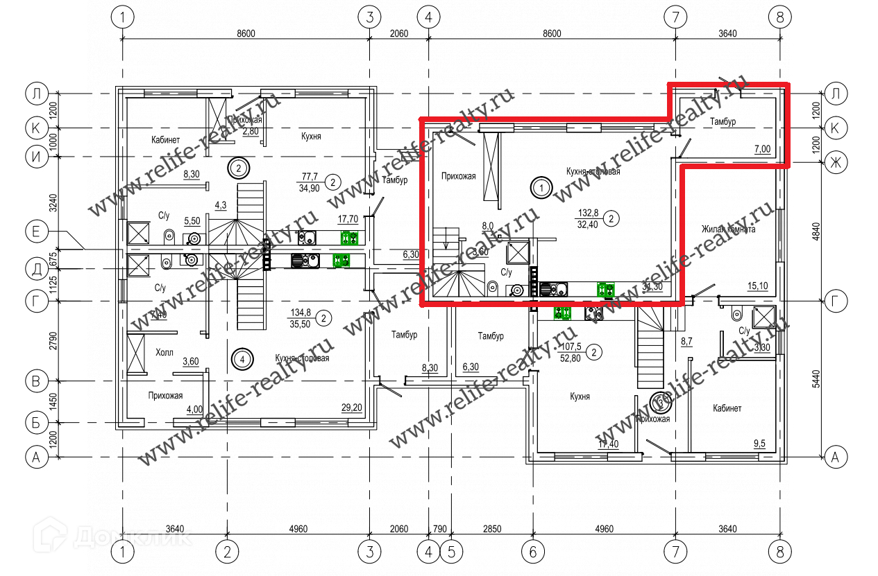 Площадь кухни 32.4 м2