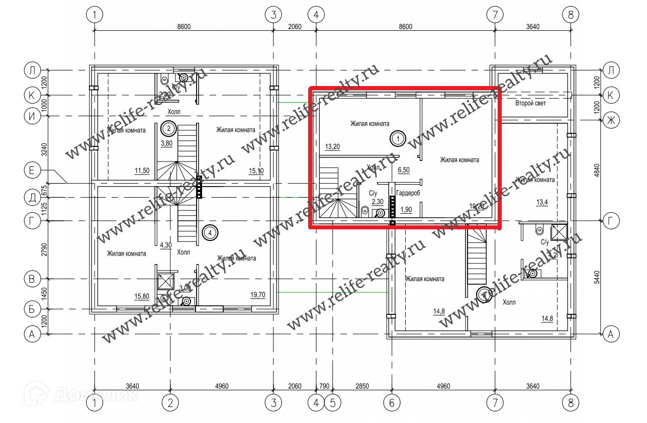 2 этаж: две спальни площадью 13.2 и 19.2 кв.м. кв.м., ванная комната.