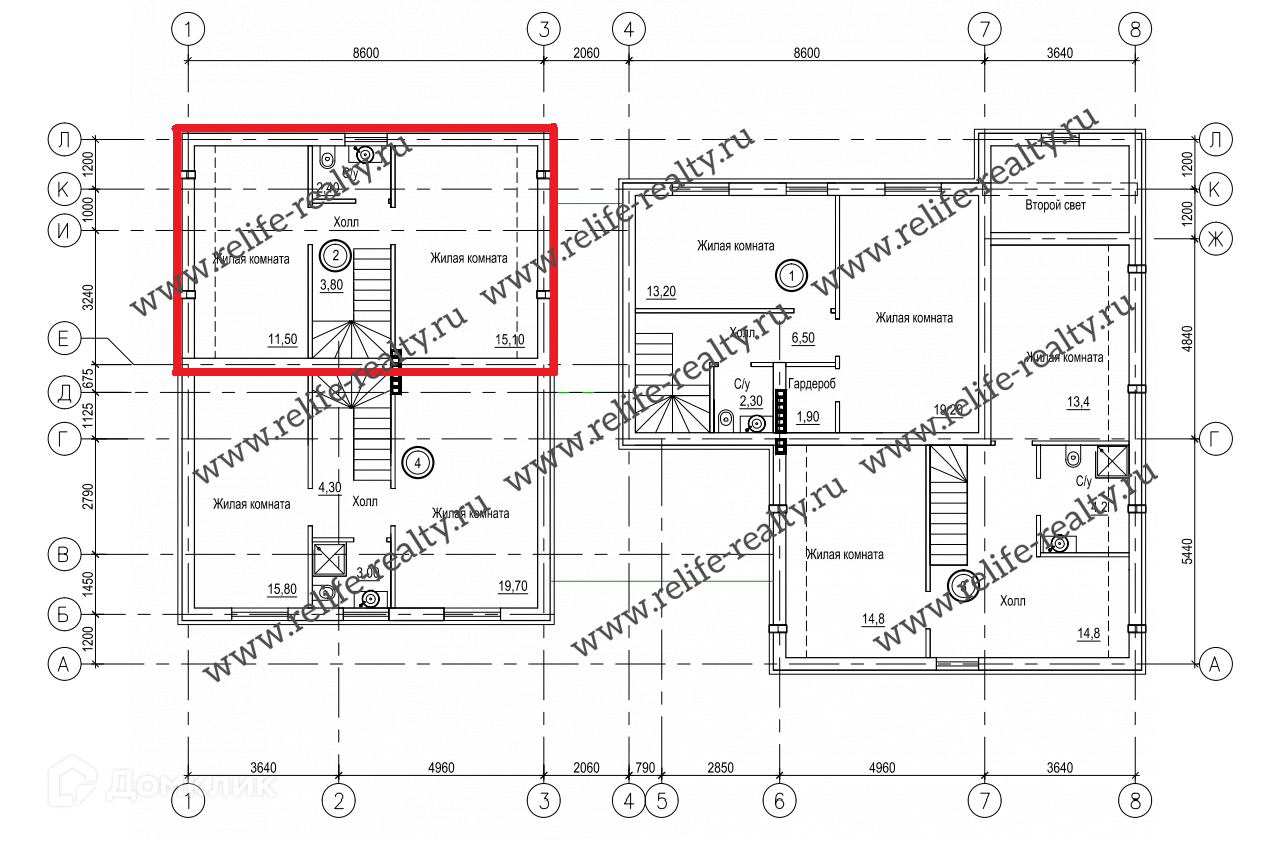 2 этаж: две спальни площадью 15.1 и 11.5 кв.м. кв.м., ванная комната.