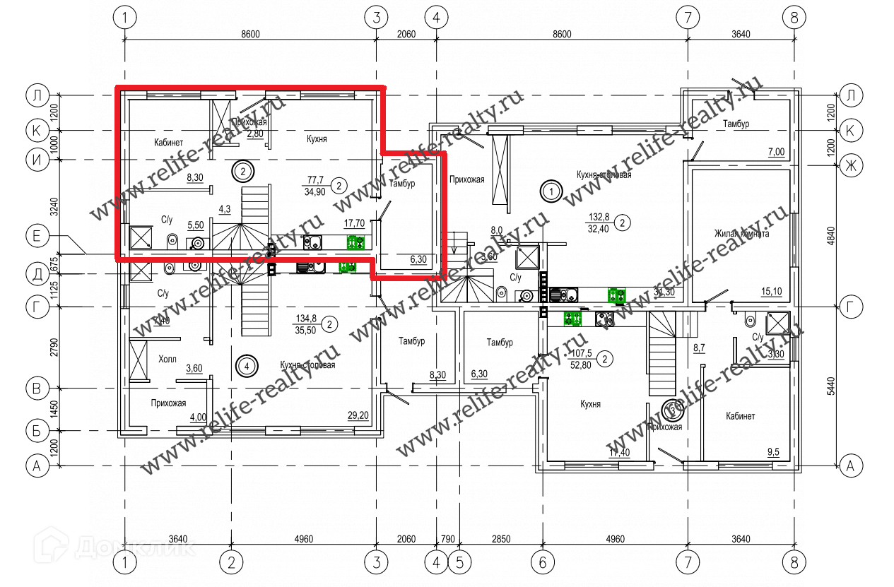 Площадь кухни 34.9 м2
